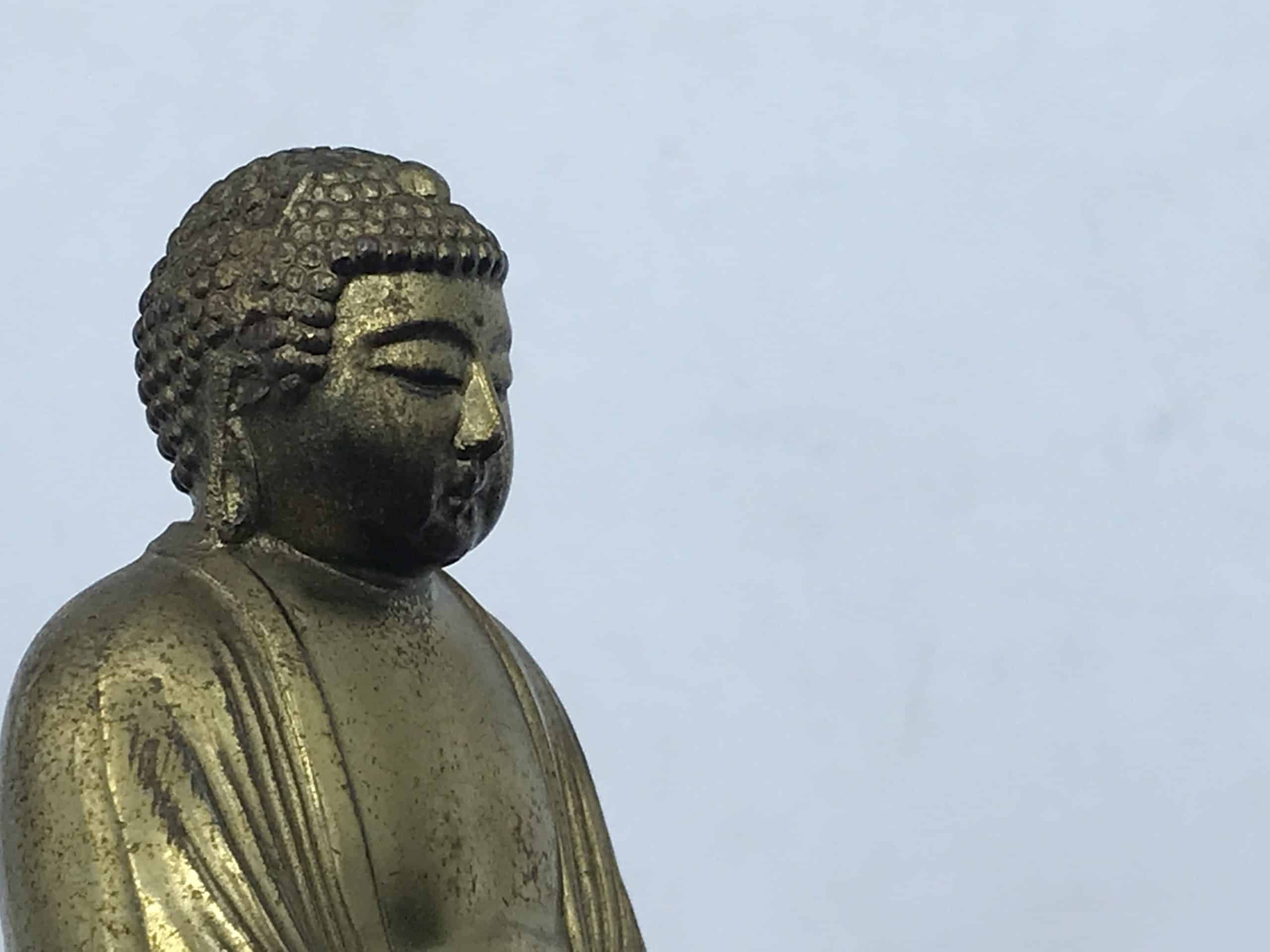 Measuring approximately 2.5 inches in height, the piece is in good condition with only light age-related surface wear. A charming and well-made decorative Buddha figure that reflects the continued tradition of Chinese devotional brass casting.