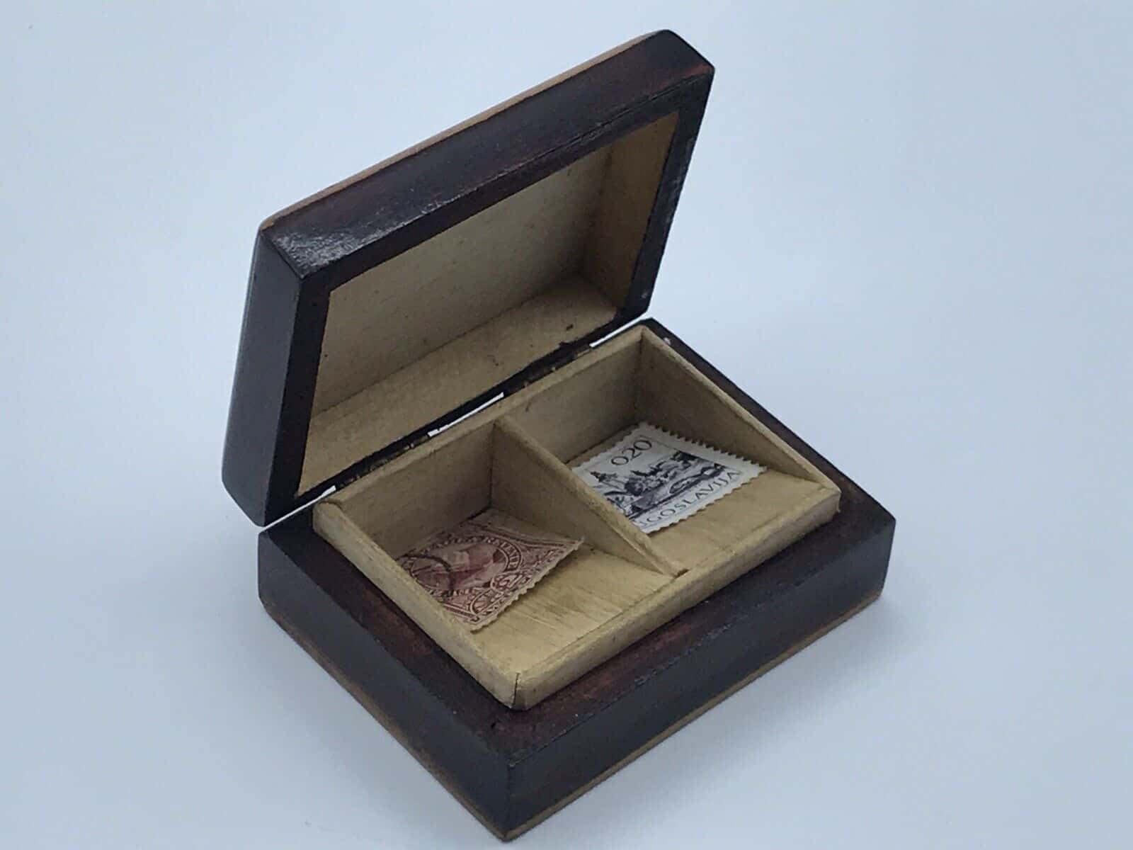 Antique Wooden Stamp Box Early 20th Century Double Compartment