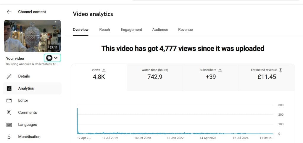 But in recent years — especially since lockdown, when I became more vocal about certain issues (including shop closures, antique laws, and the ongoing tool theft epidemic) — my channel has experienced an alarming decline in visibility.