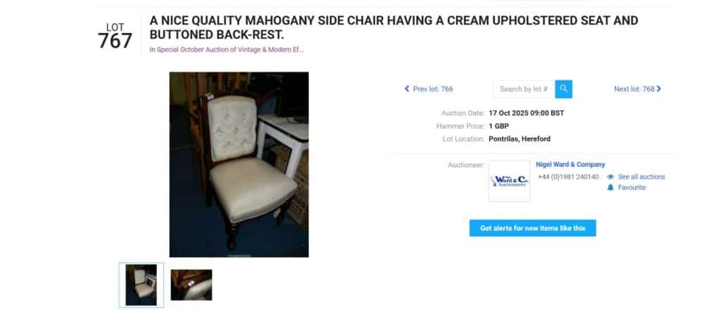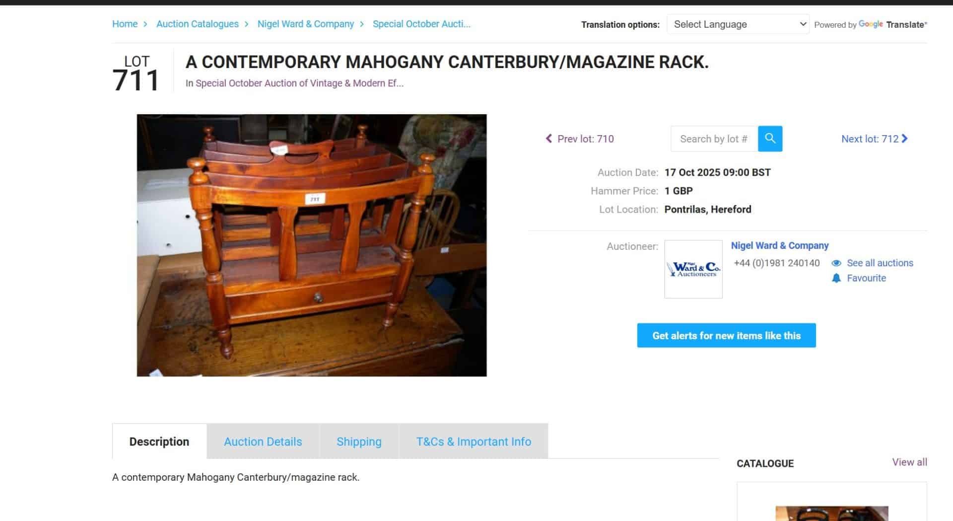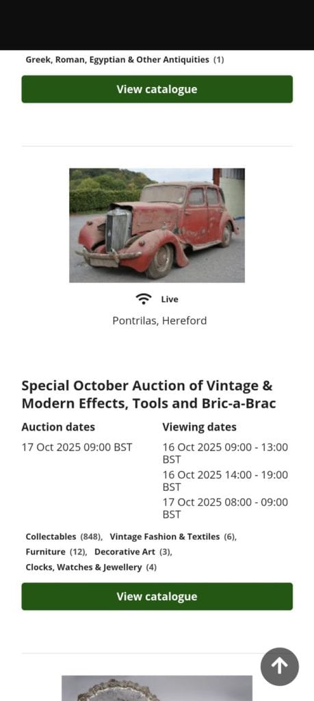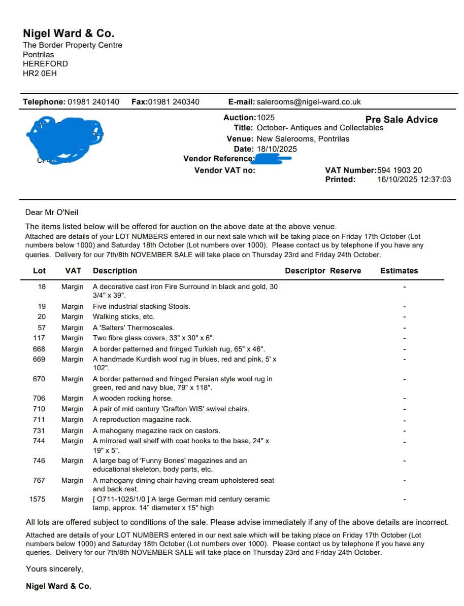 I waited nearly two weeks for the pre-sale advice from the auction house, but it never arrived. By Thursday, 14th October, with the sale scheduled for Friday, 15th October, I still hadn’t received a single update. When the online catalogue was finally released that Thursday, I went through the entire thing manually to find my lots on The Saleroom website.