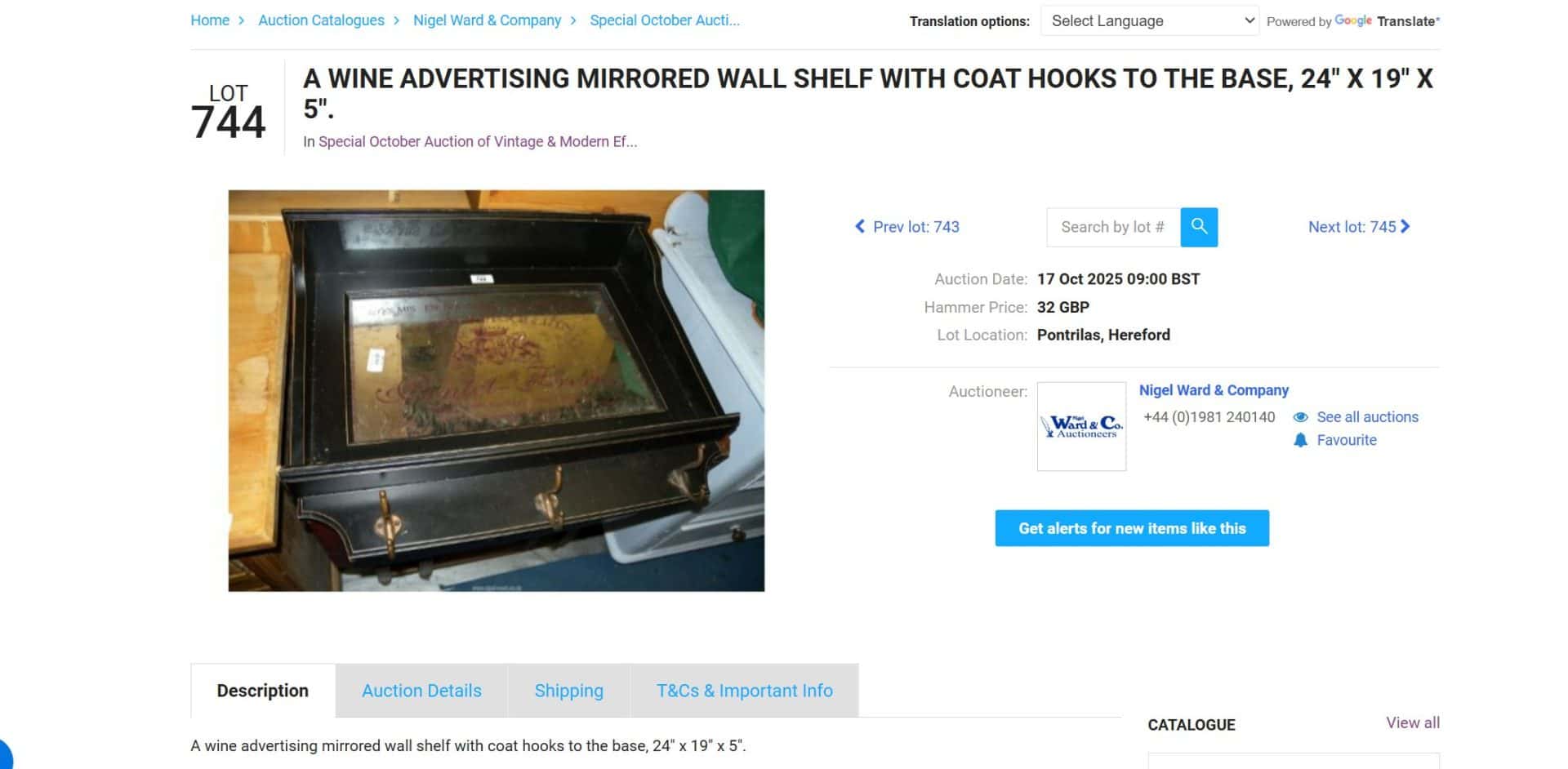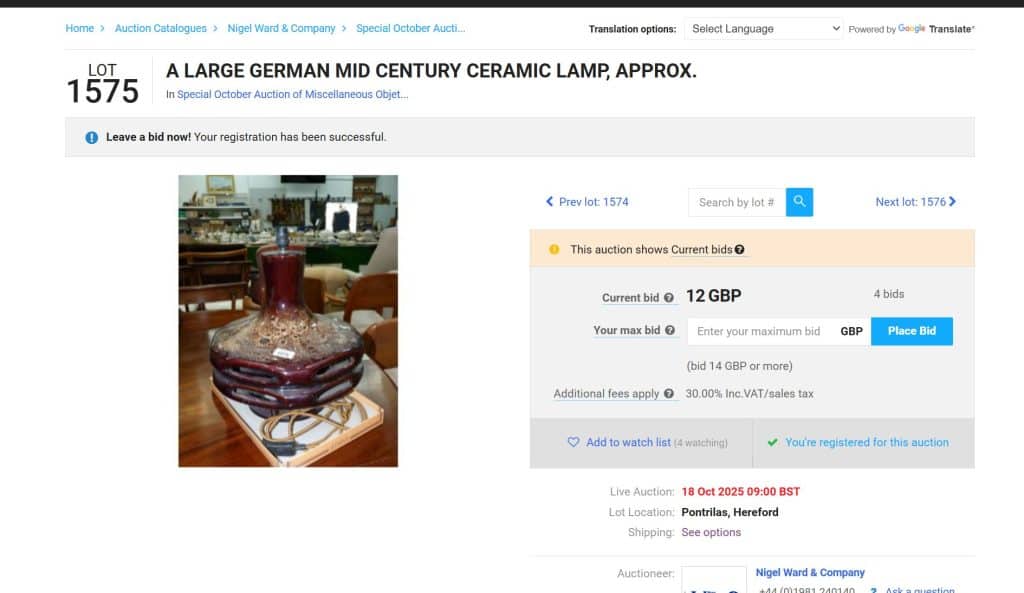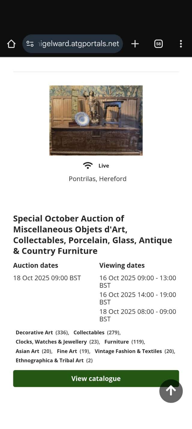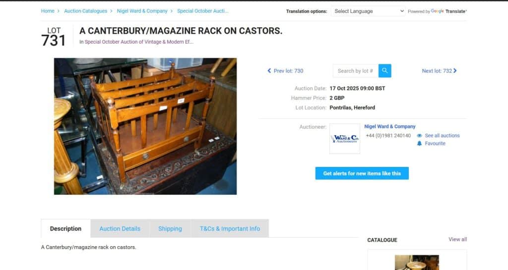 I waited nearly two weeks for the pre-sale advice from the auction house, but it never arrived. By Thursday, 14th October, with the sale scheduled for Friday, 15th October, I still hadn’t received a single update. When the online catalogue was finally released that Thursday, I went through the entire thing manually to find my lots on The Saleroom website.