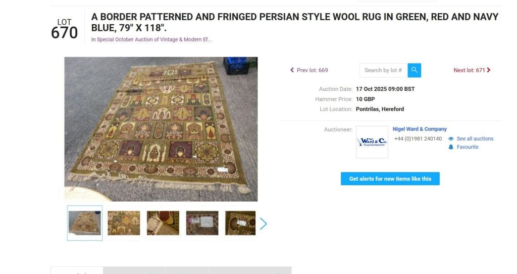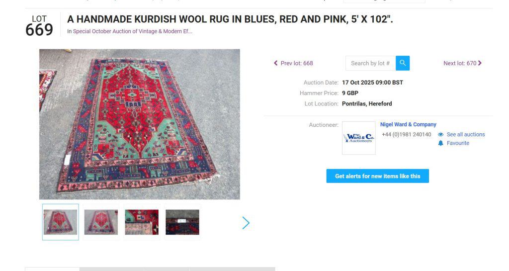 Similarly, do you consider it acceptable that a handmade antique Kurdish wool rug achieved less than £10 in that setting?