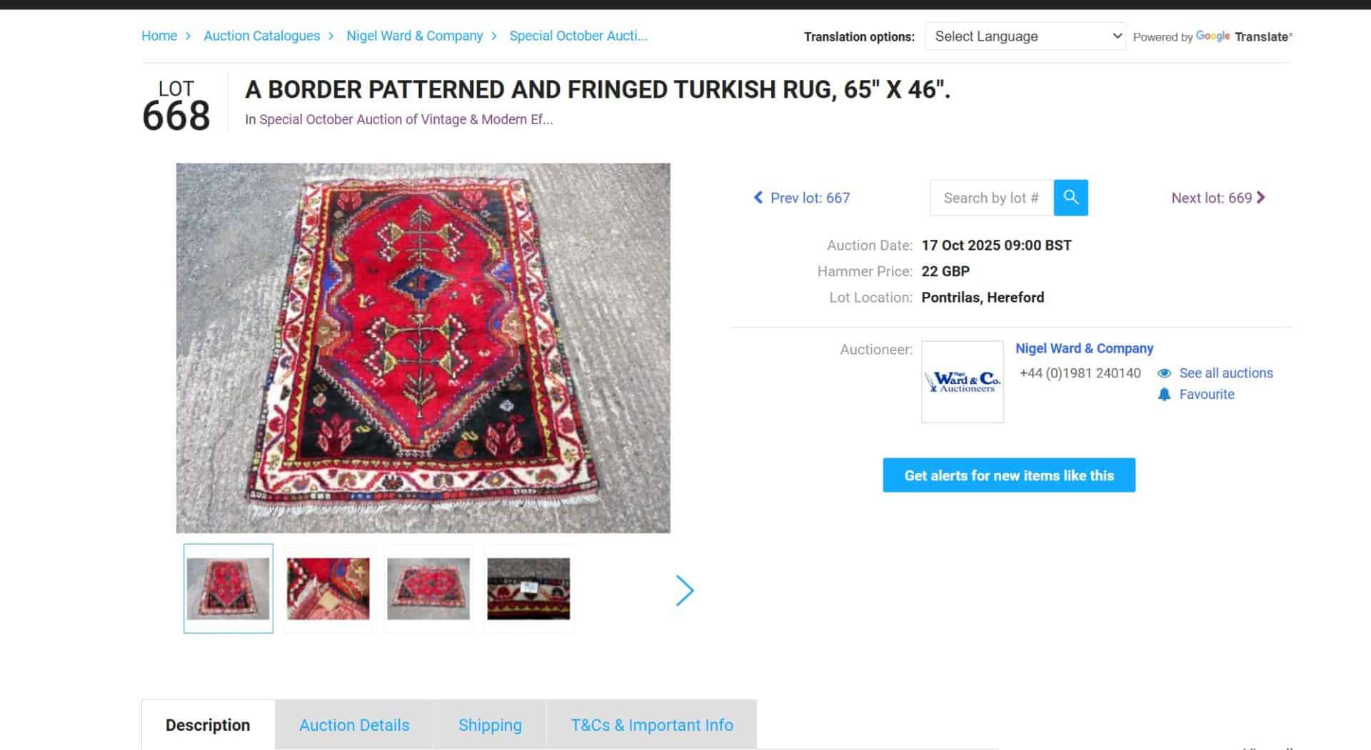 When I asked him directly if he was proud of how his team handled my consignment, he avoided the question. I asked whether he genuinely believed my items belonged in that sale. His only defence was that “they often sell rugs in that section,” adding that some had made between £25 and £90. I reminded him that rugs also sold in the antiques auction the following day — so why weren’t mine placed there?