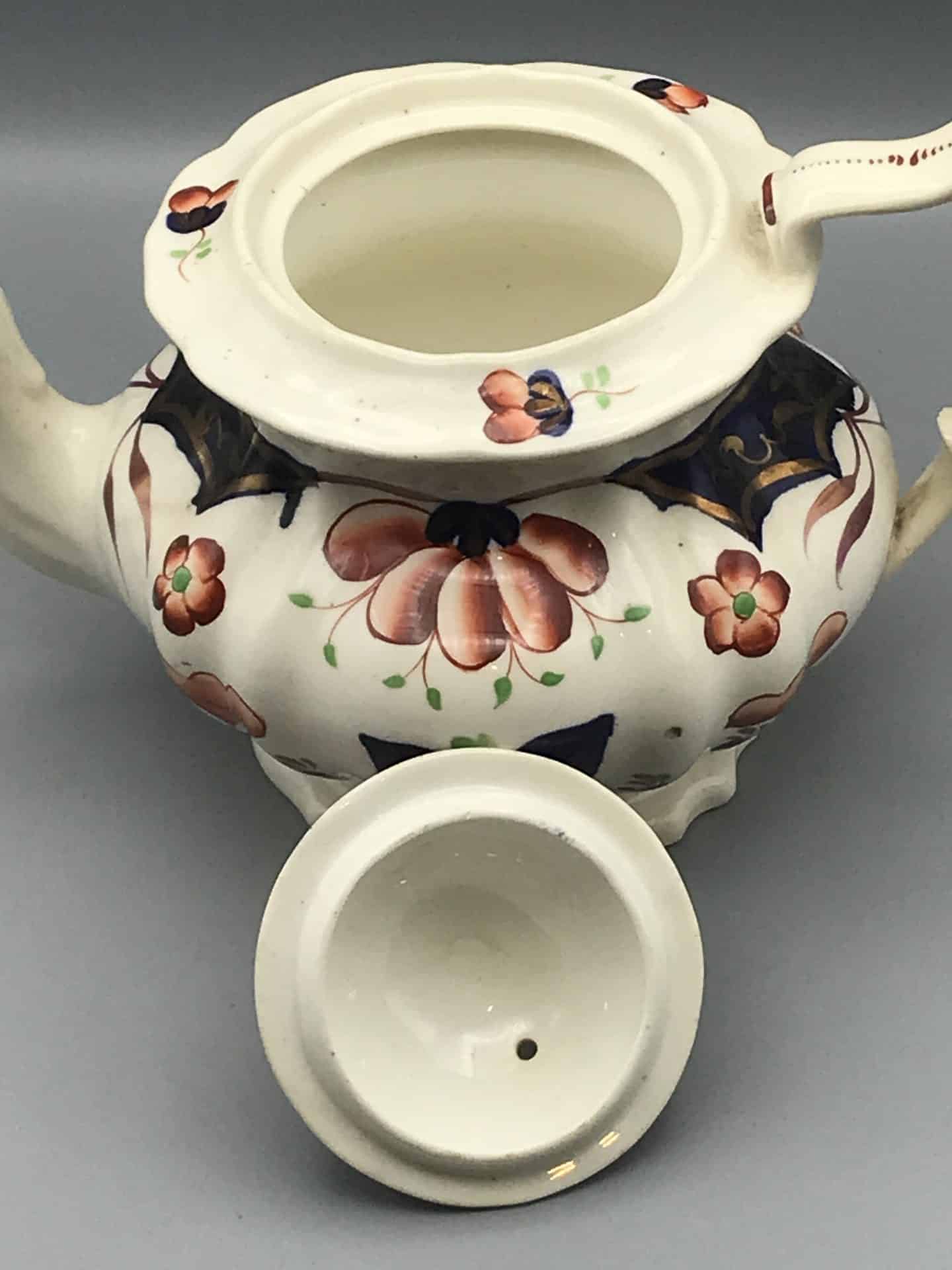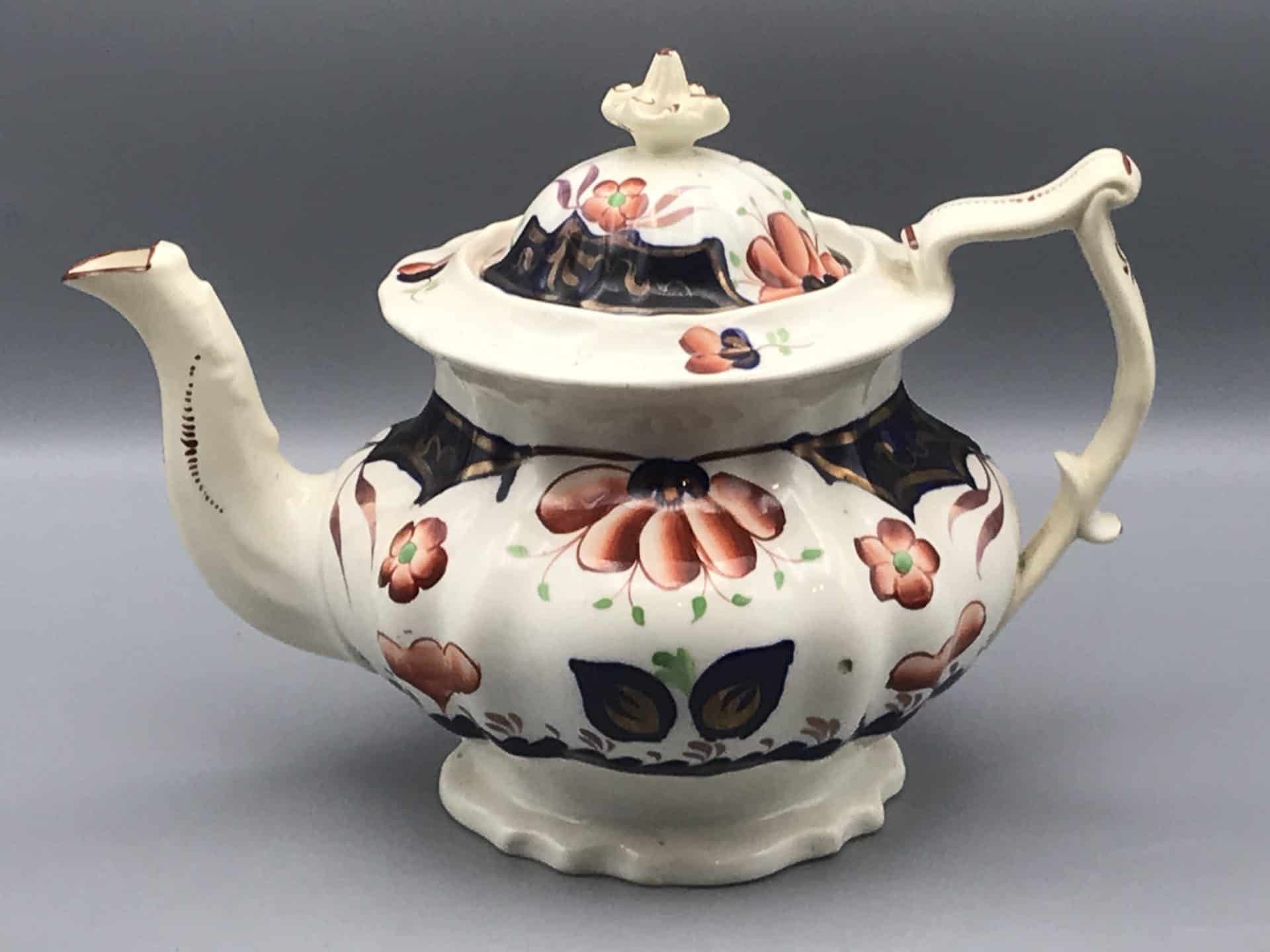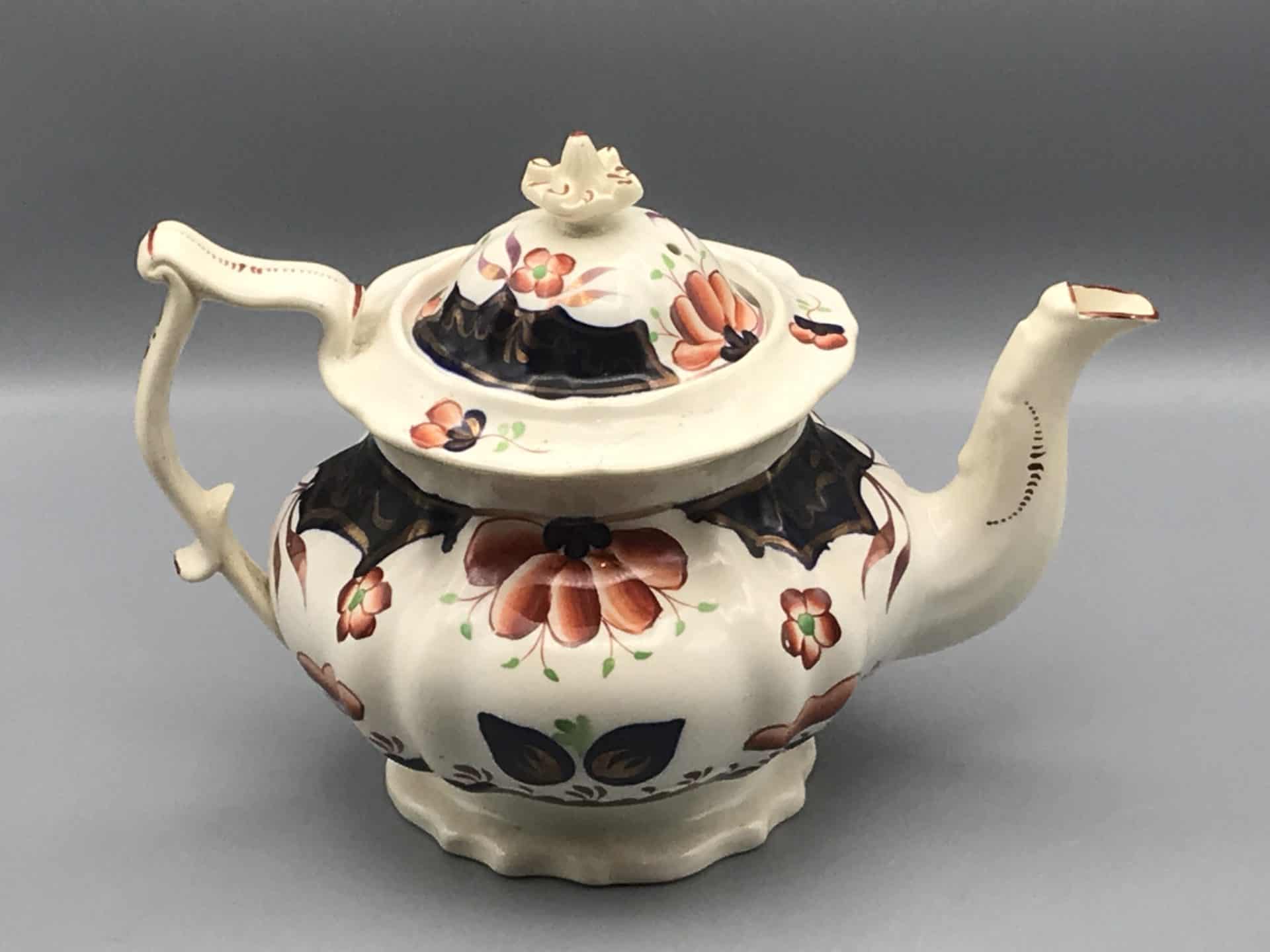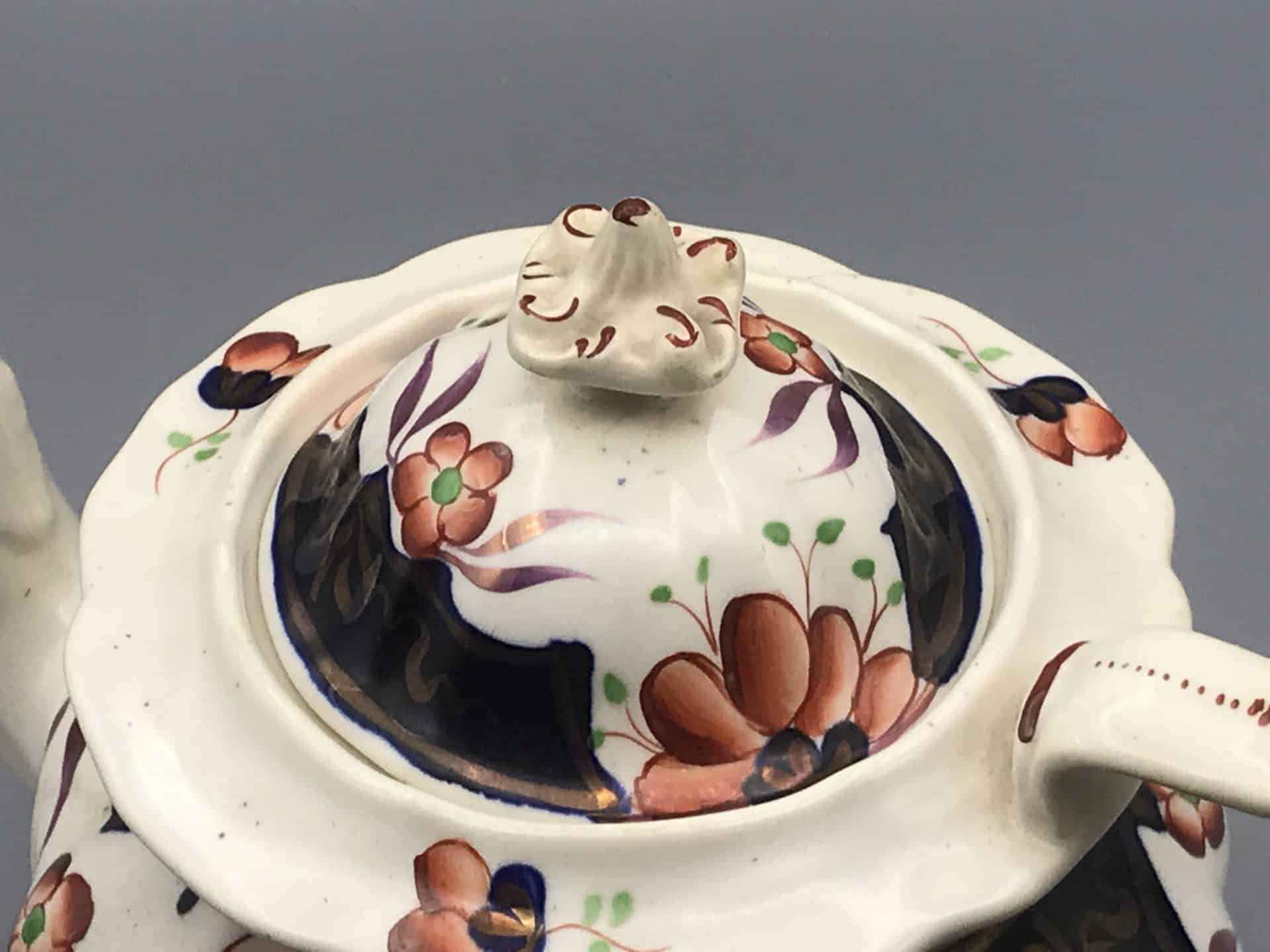 19th Century Gaudy Welsh Pottery Teapot – Hand Painted Floral Design