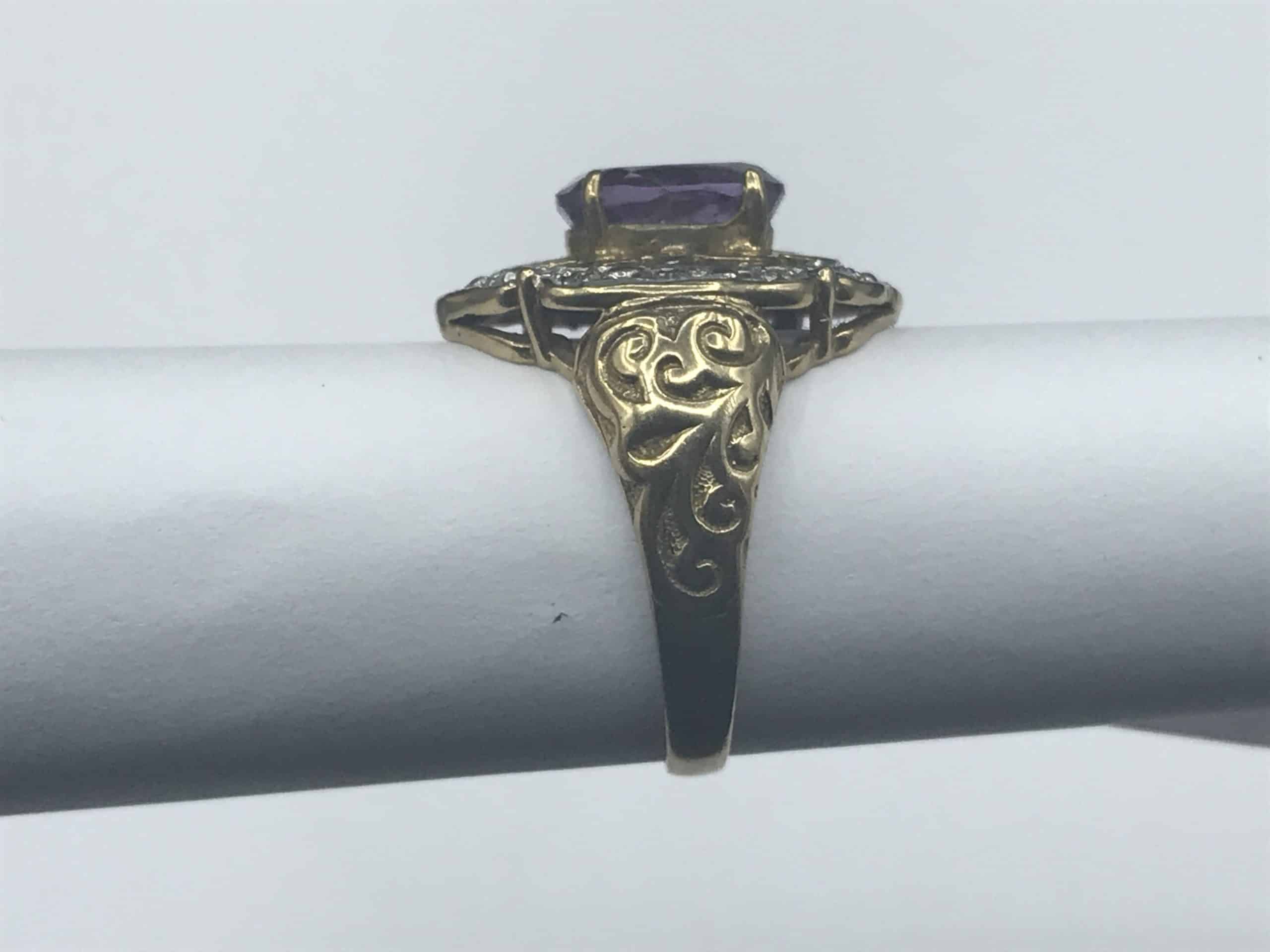 Exquisite 9ct Gold Amethyst & Diamond Ring – Elegant Statement Piece