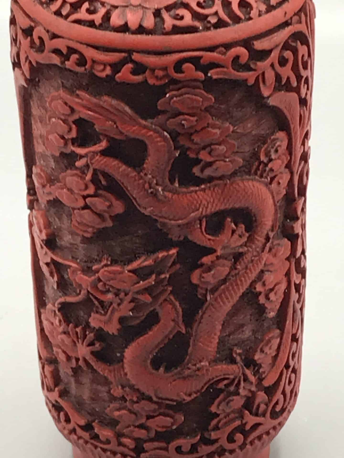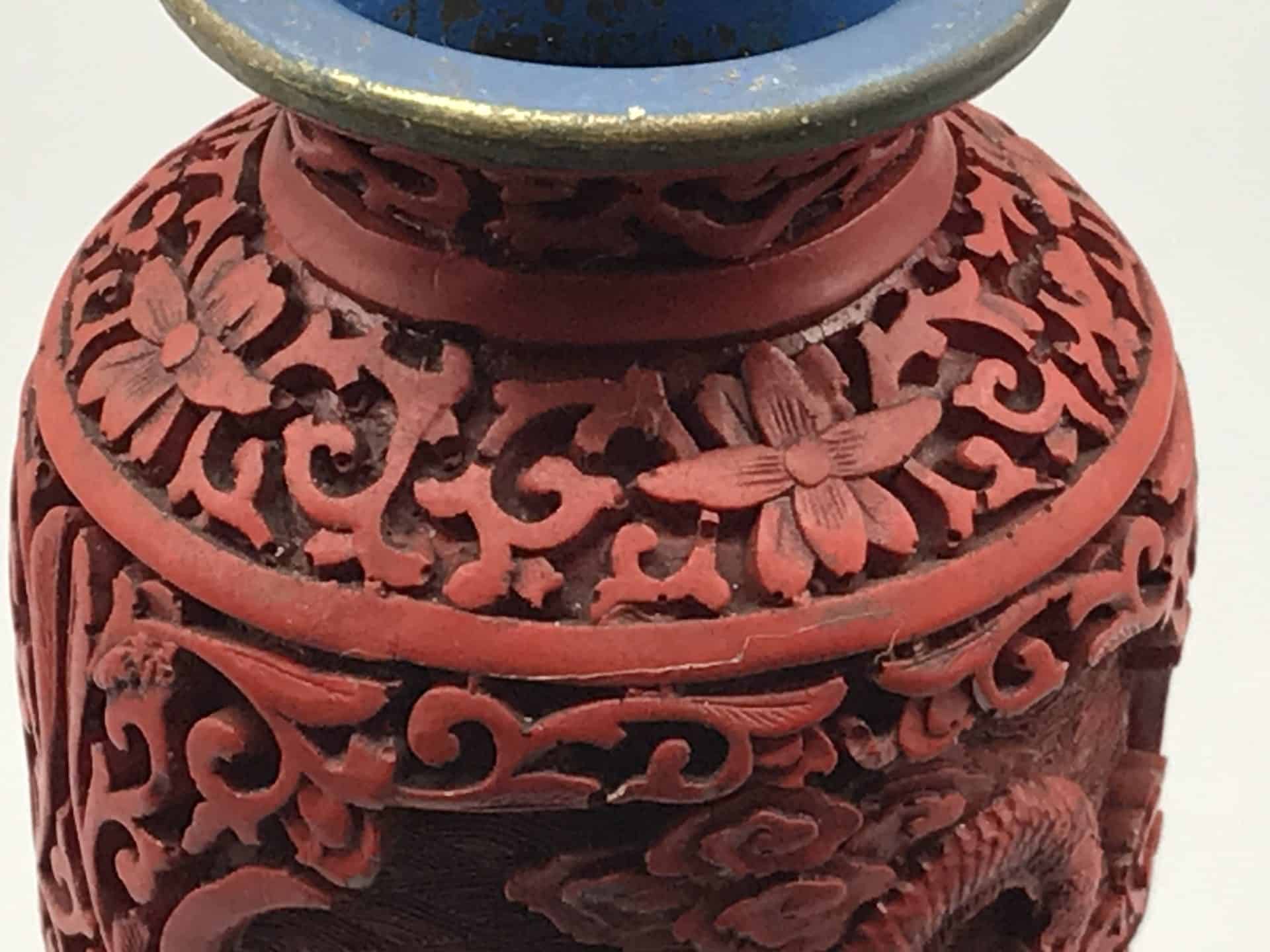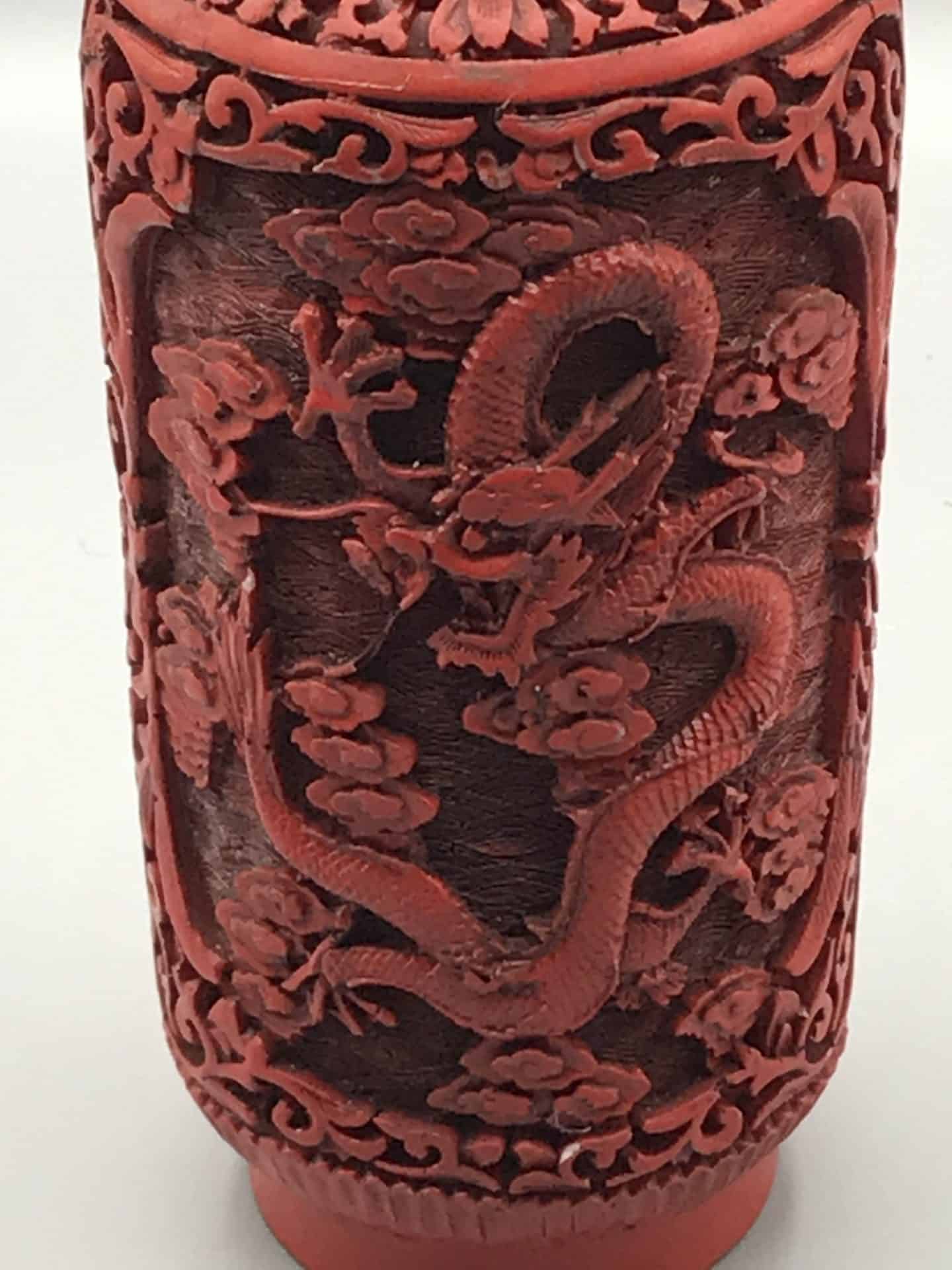 Antique Chinese Cinnabar Lacquer Vase – Carved Dragon & Cloud Motif