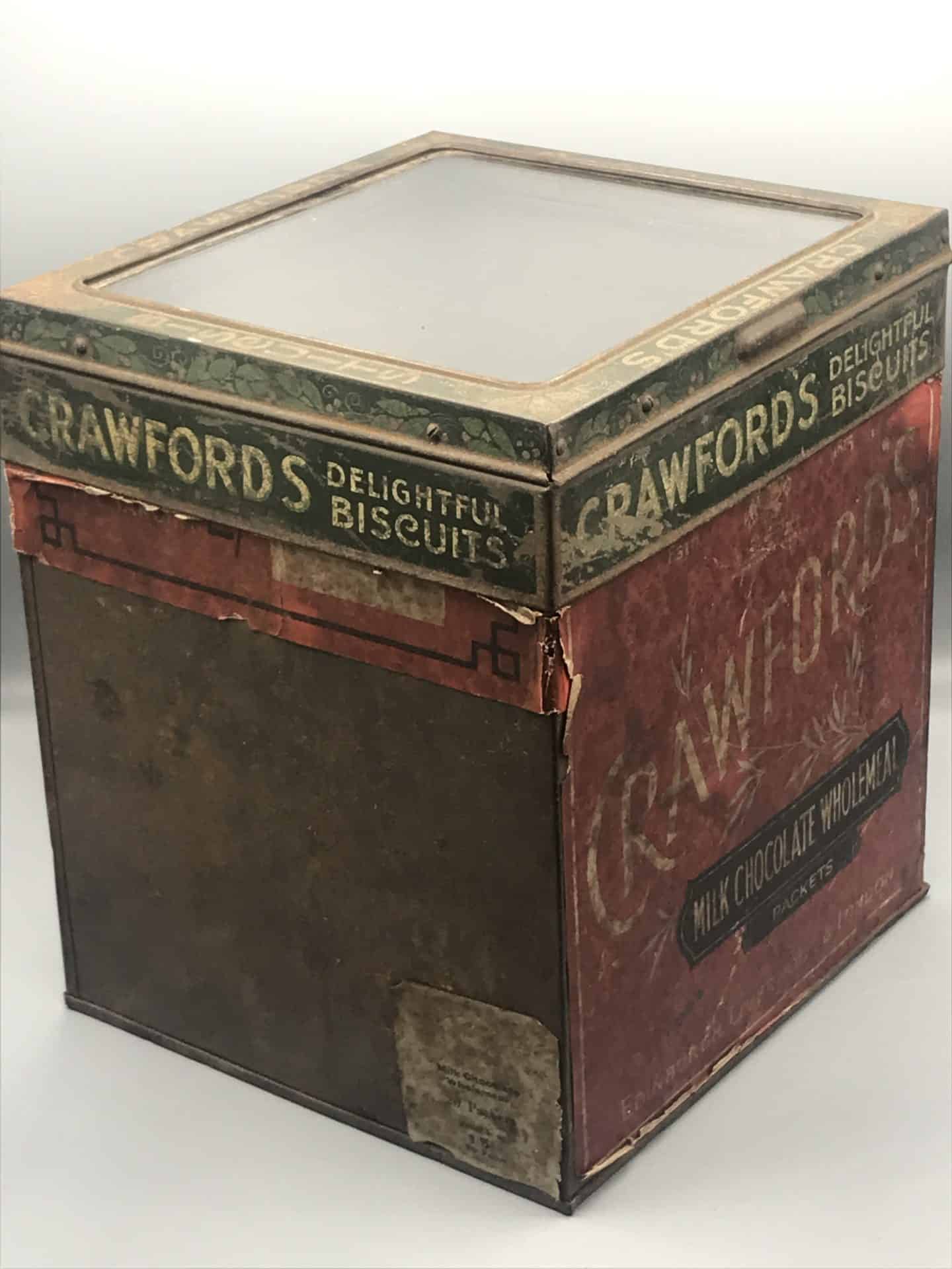 Antique Tin Biscuit Shop Display Box with Glass Lid – Crawfords