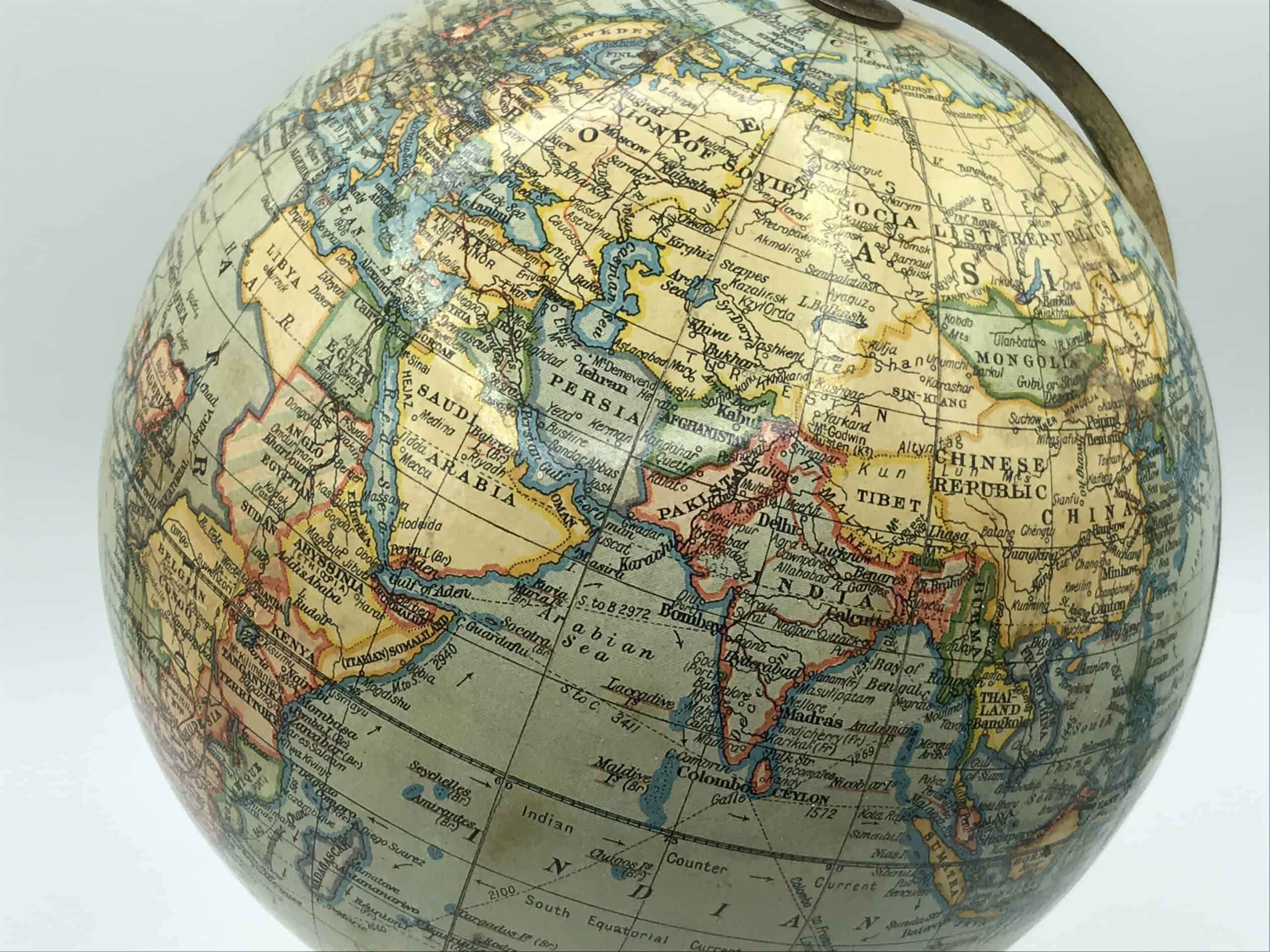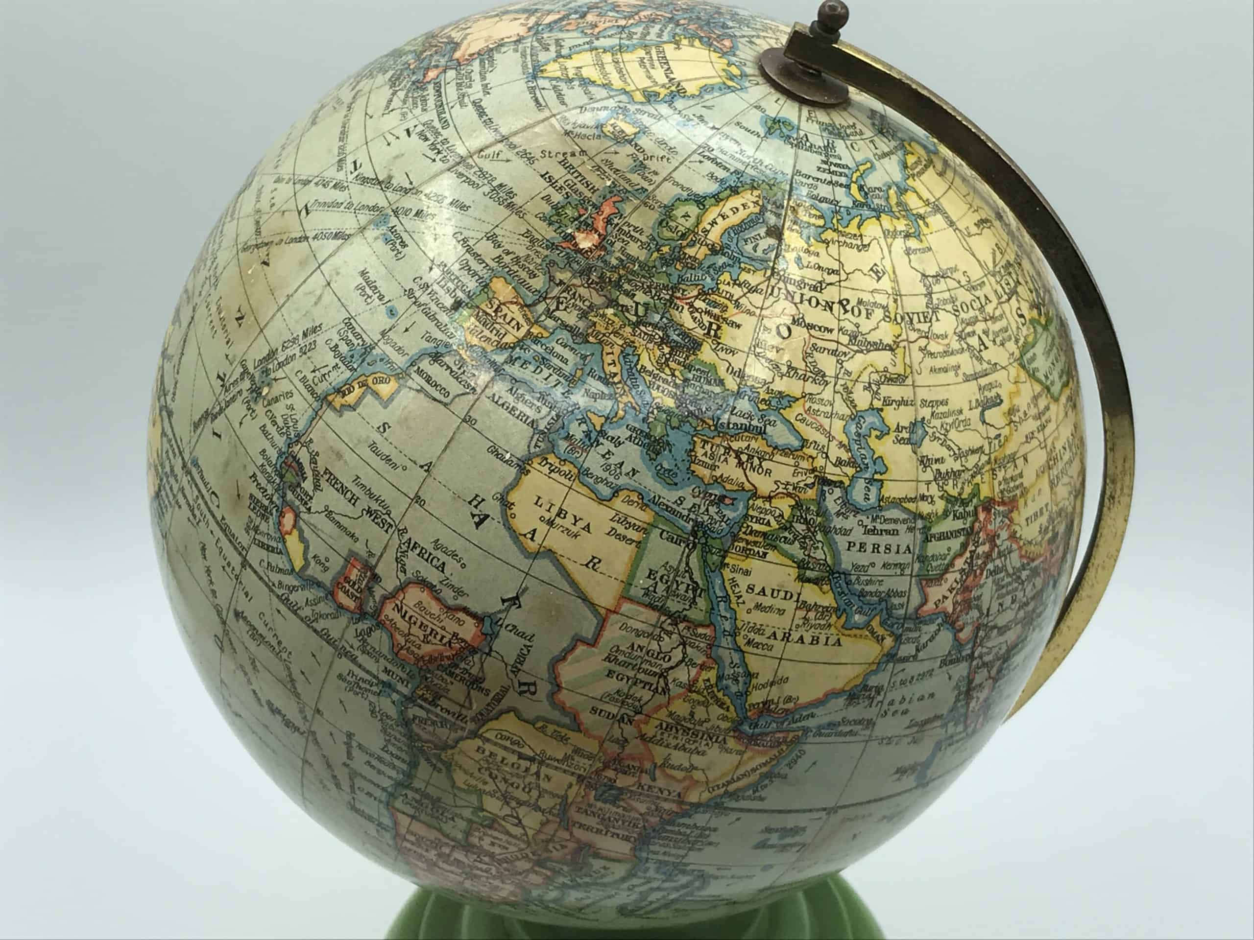 This rare vintage globe is a stunning collectible and an authentic piece of history! Would you like additional close-ups or information on specific locations marked on the globe? 😊