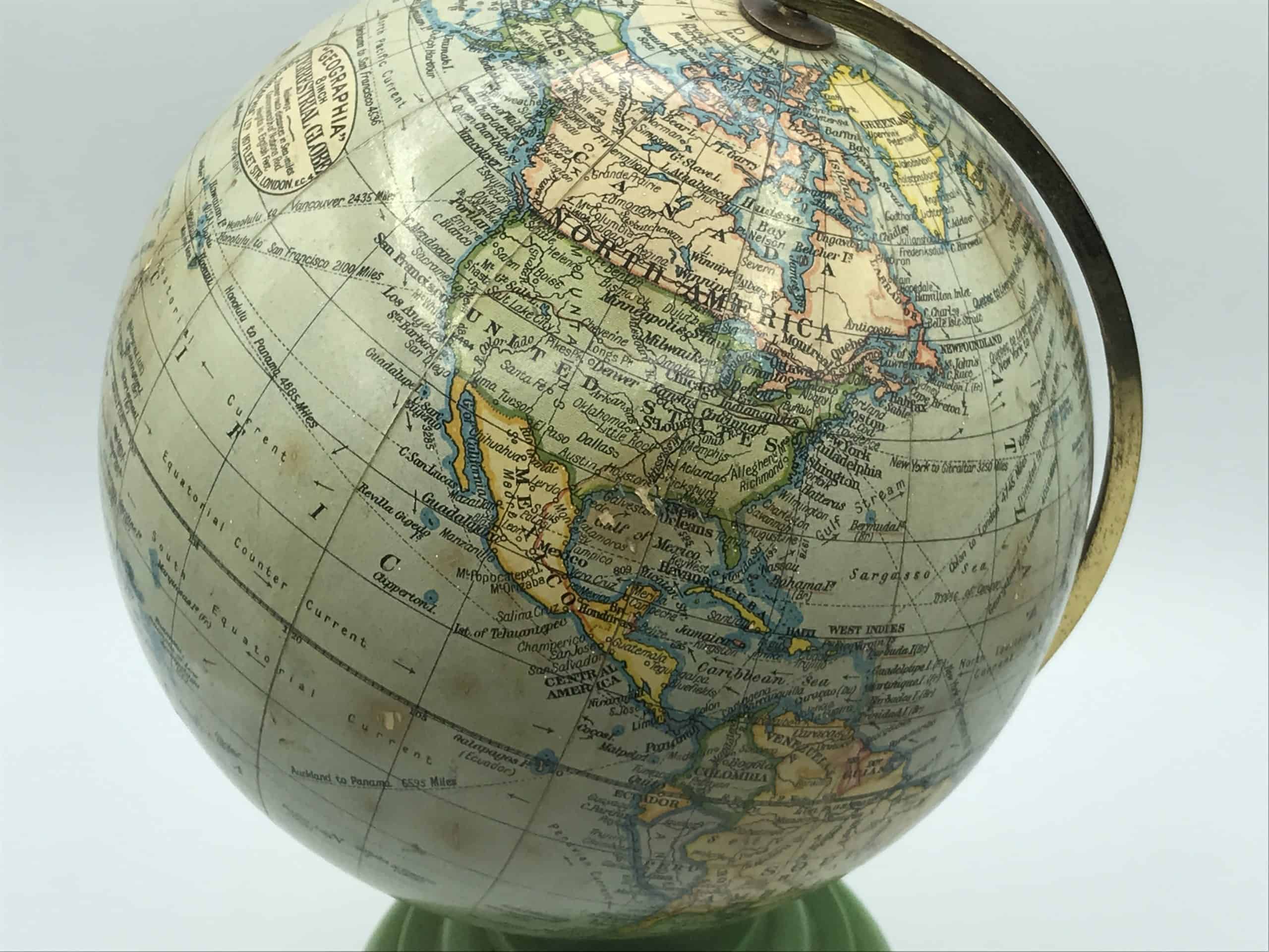 🌍 Art Deco Geographia Terrestrial Globe with Green Bakelite Base 🌍