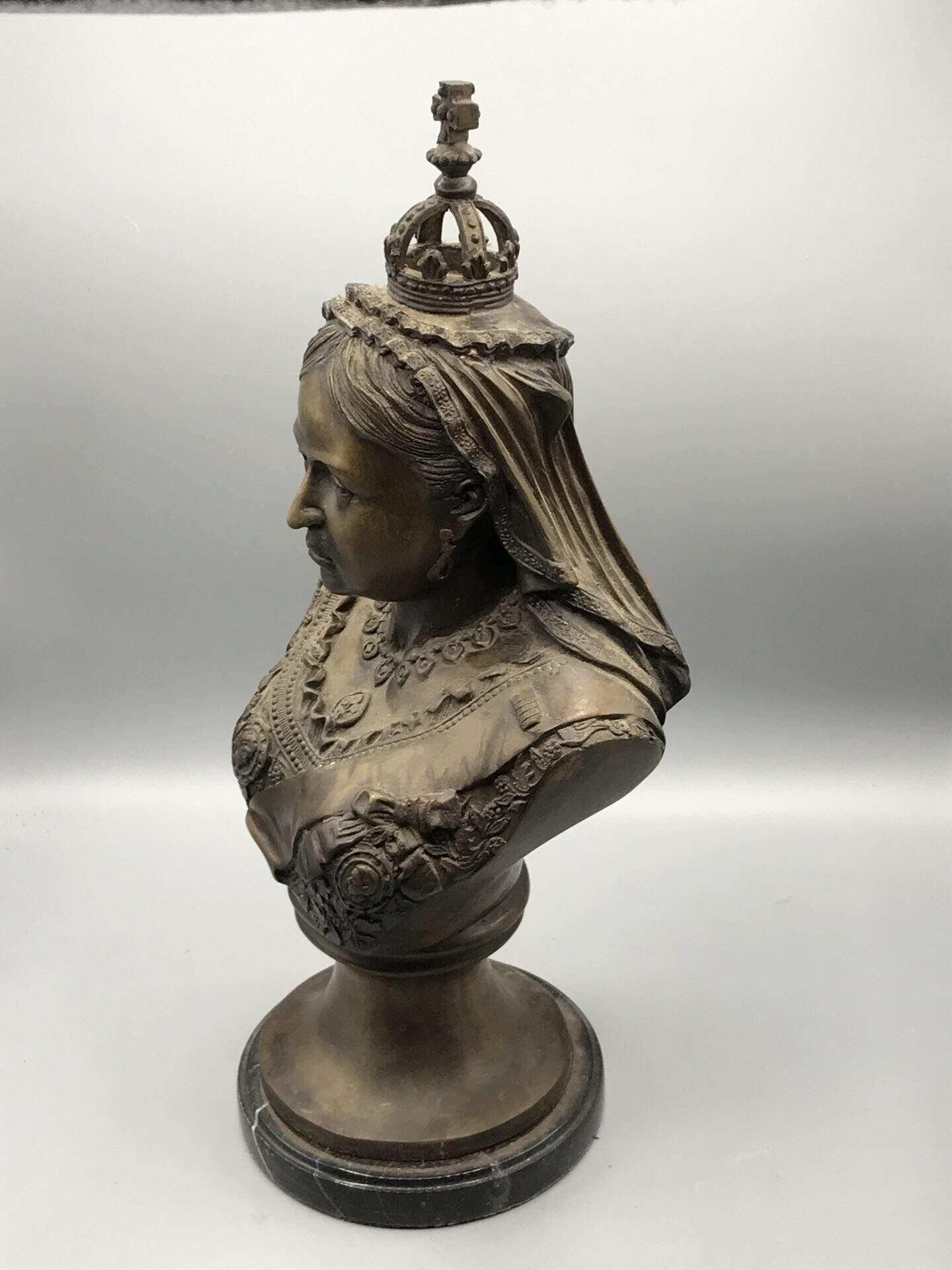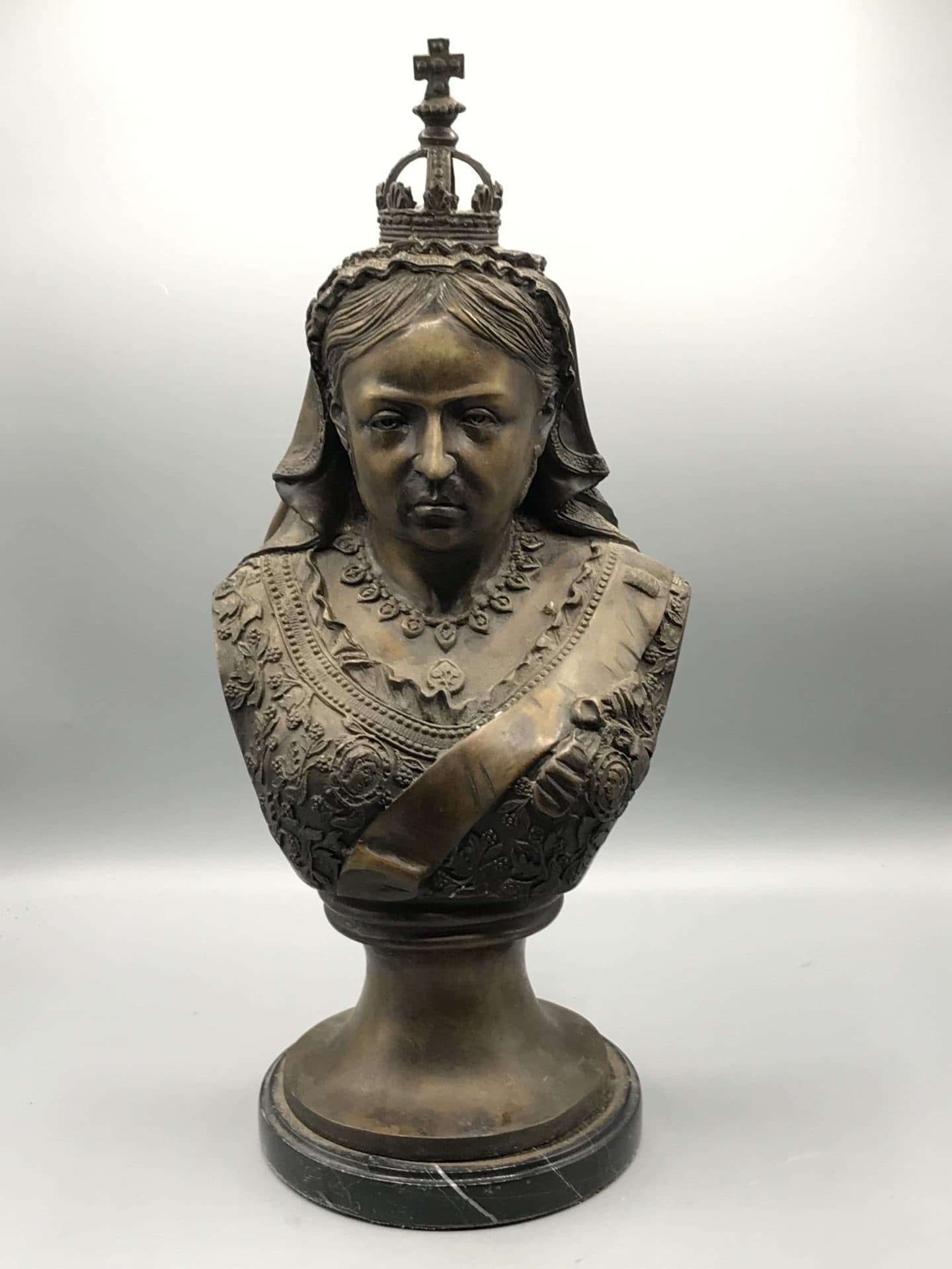 Bronze Bust of Queen Victoria on Marble Plinth – 19th Century Style