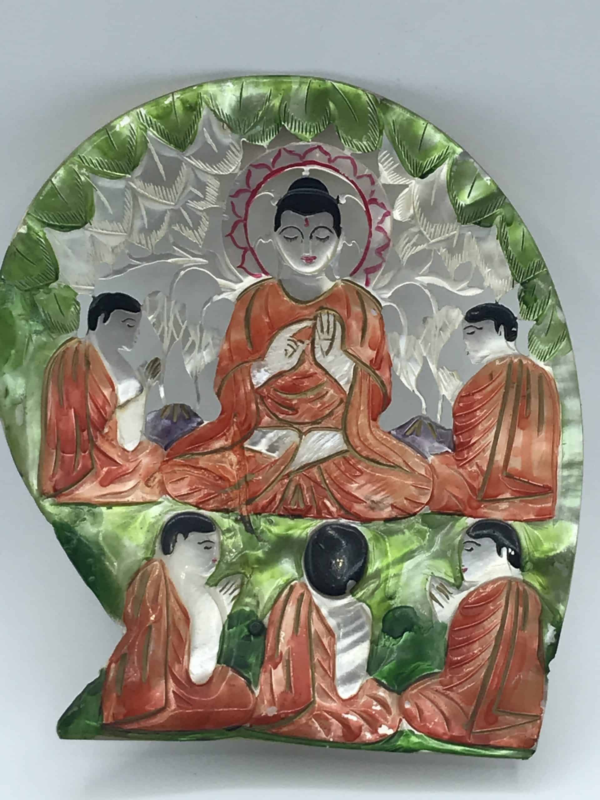 Carved and Painted Mother Of Pearl Panel Under The Budhi Tree