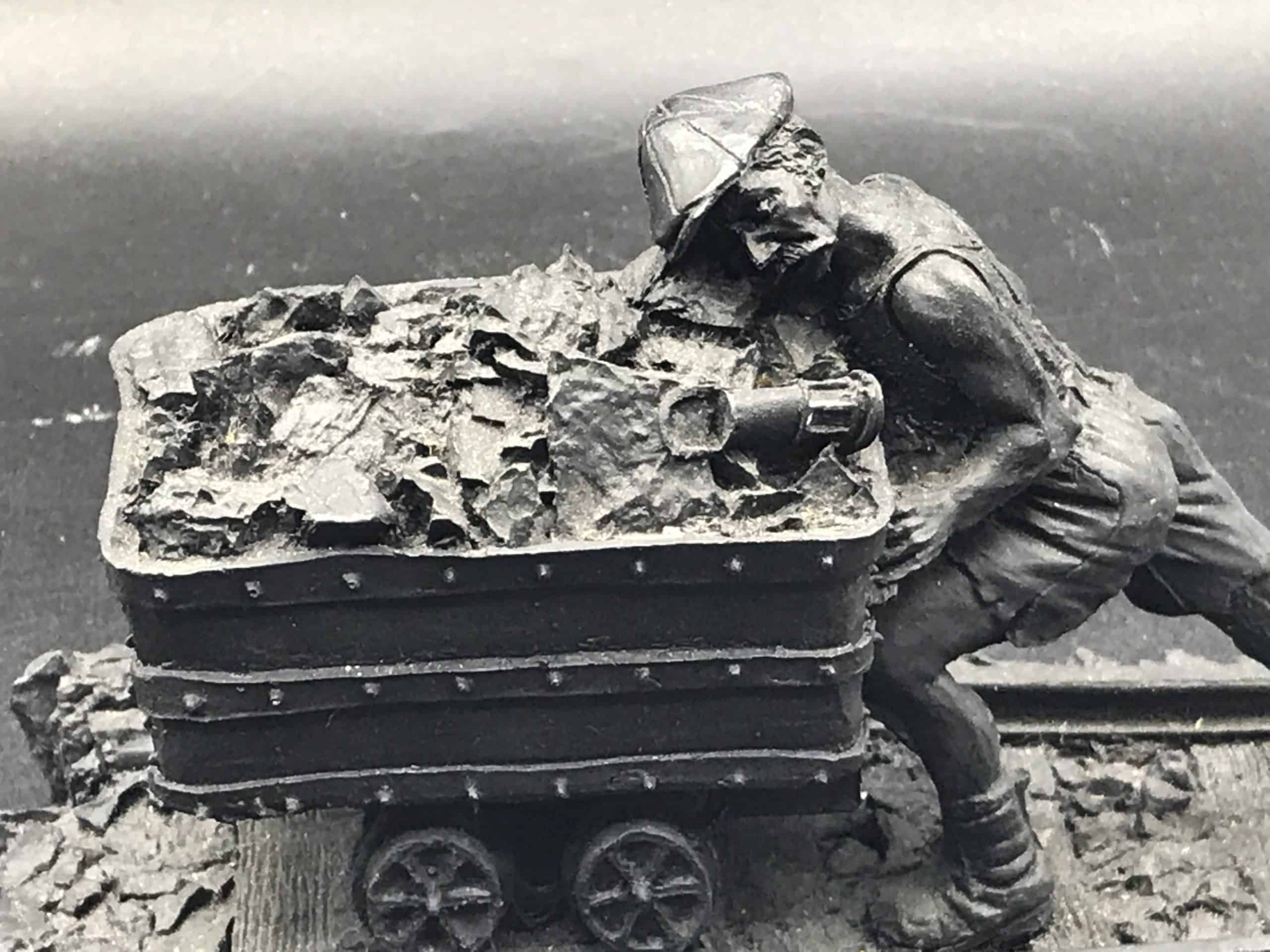 Group Carved Crafted Coal Miners and Lamp From Welsh Coal