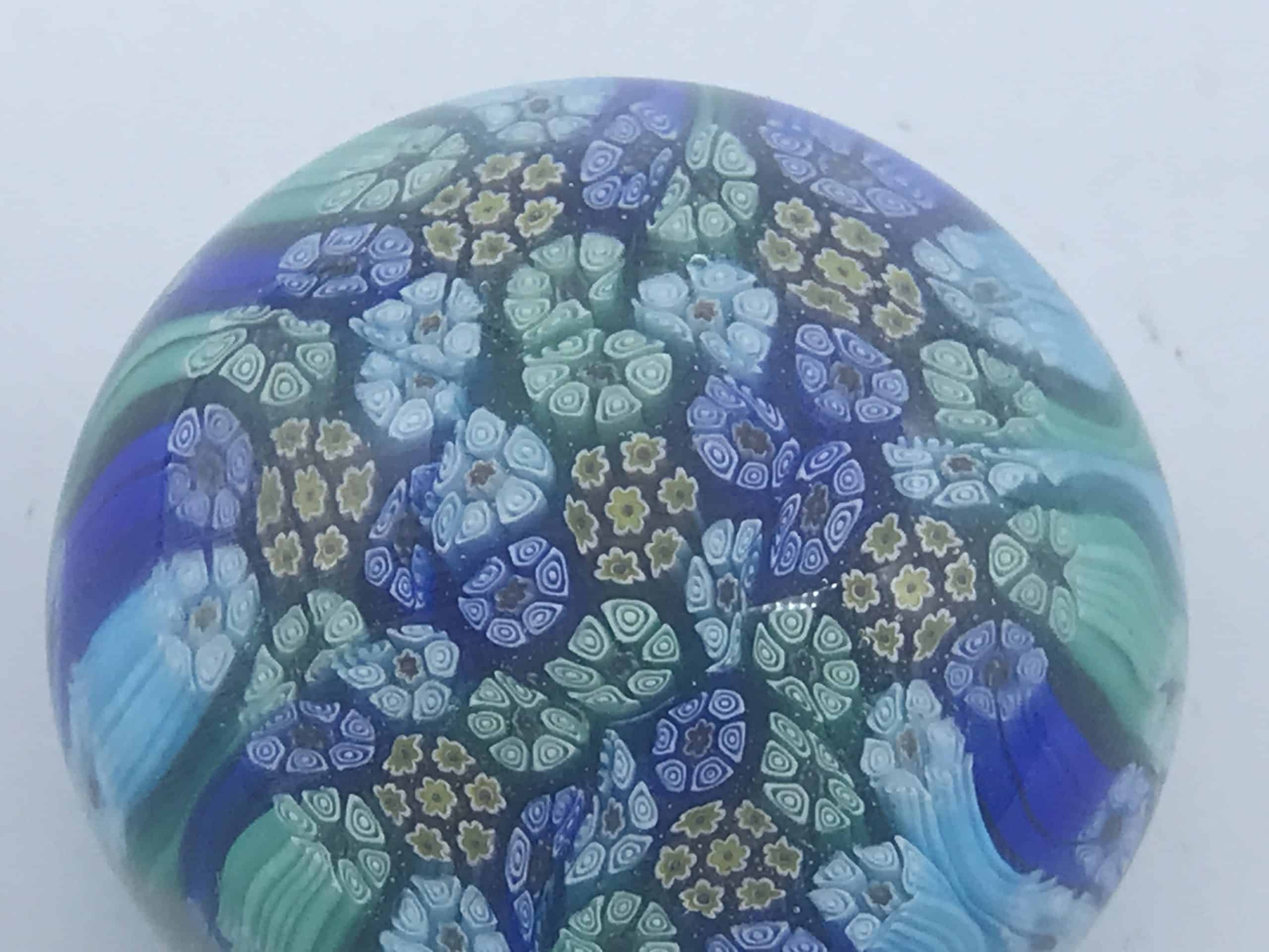 On offer here is a stunning Italian Murano Millefiori Glass Paperweight With Label. The size is approx 47mm in diameter and in good condition. stock code IMMGPW002