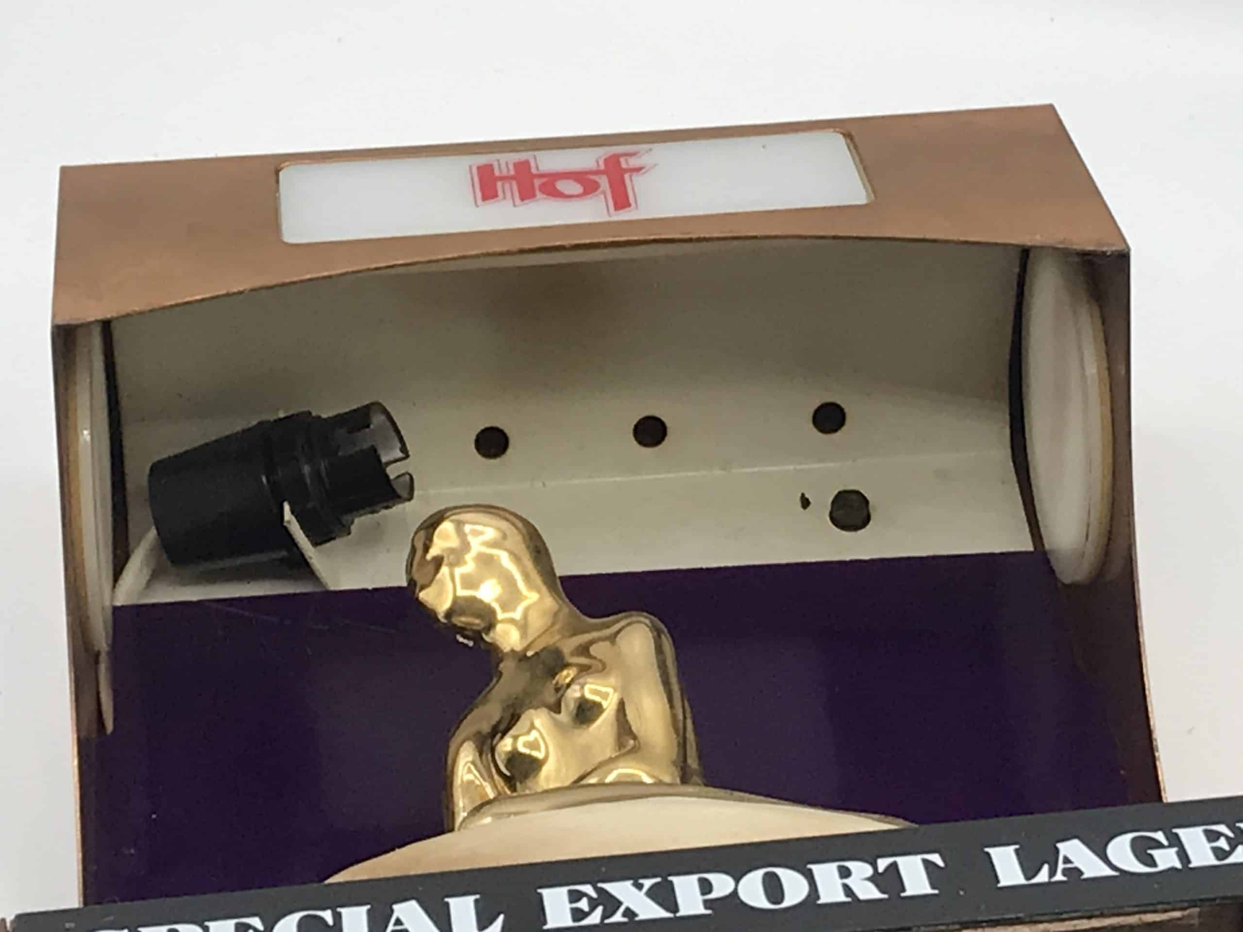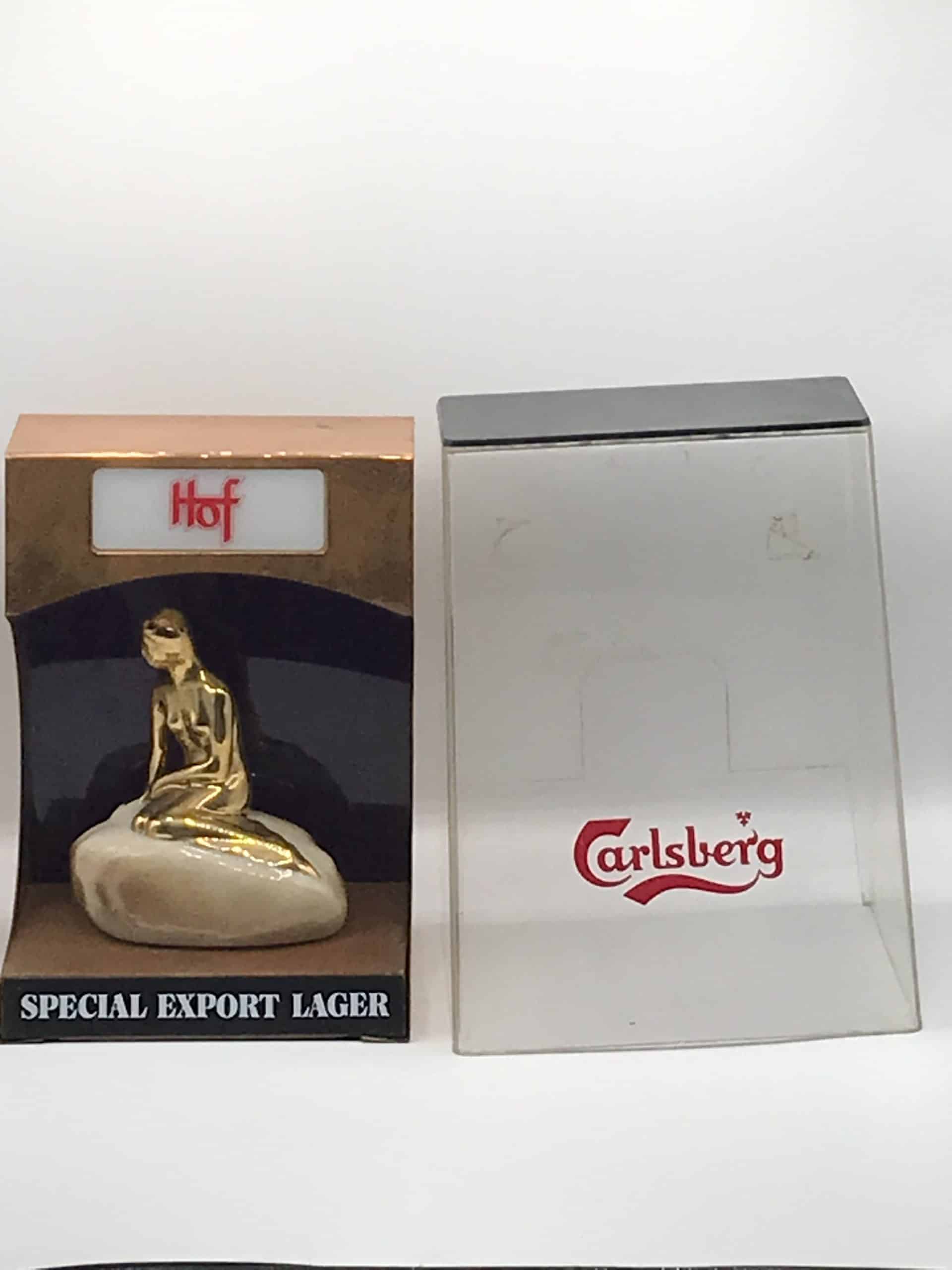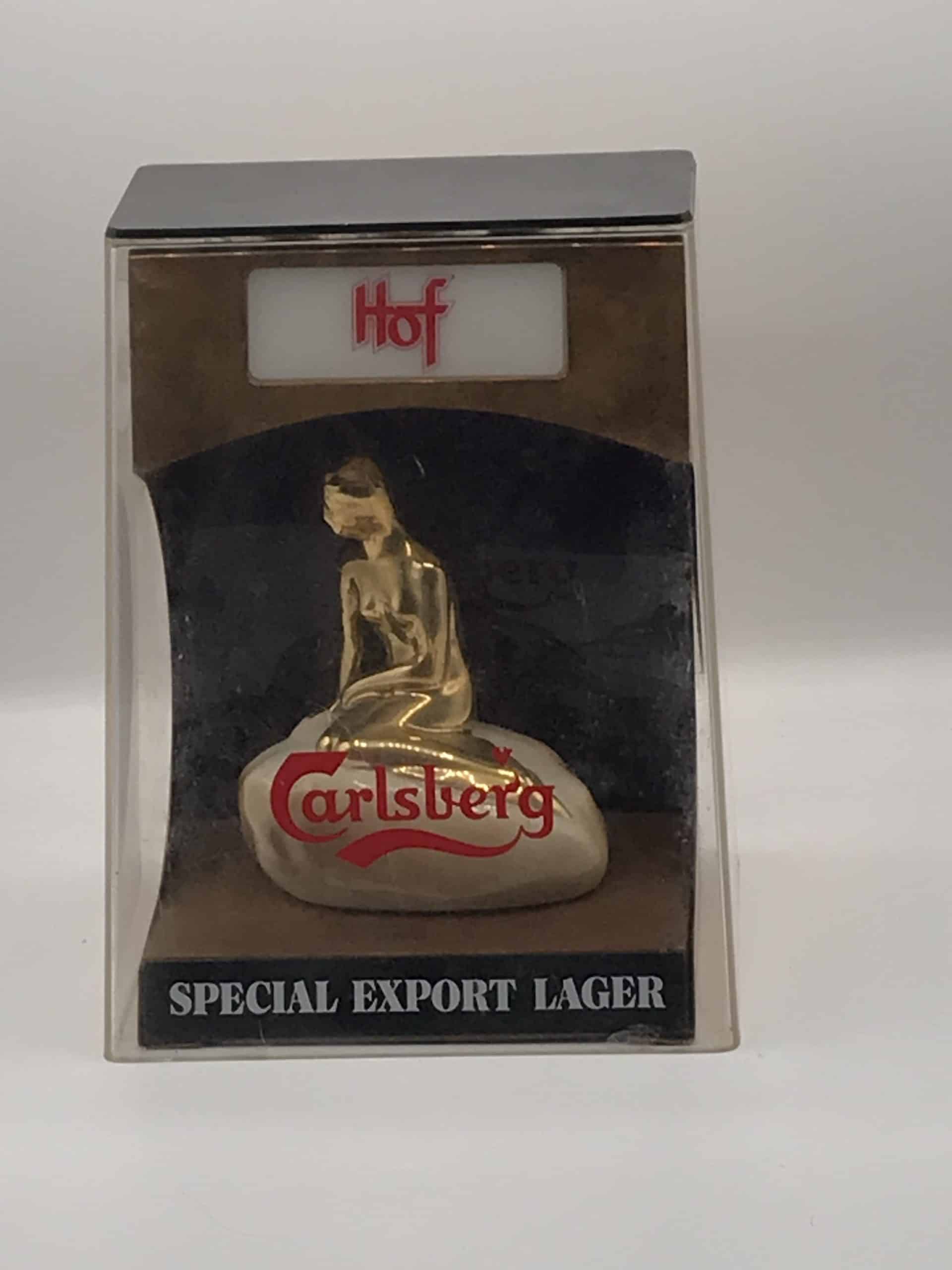 Standing at approximately 10 inches tall, this rare Carlsberg advertising display is a fantastic addition to any vintage beer sign collection, bar decor, or Danish brewery memorabilia set.