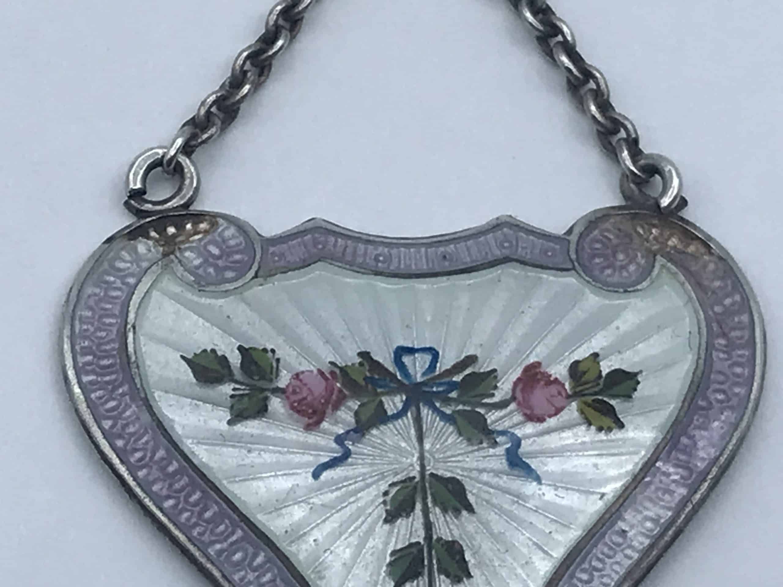 On offer is a rare Art Nouveau sterling silver and enamel necklace made by J Aitkin and Son and hallmarked in Birmingham in 1911. The pendant displays the flowing, organic forms typical of the Art Nouveau period, with beautifully executed guilloché enamel in soft tones and hand-painted floral detailing. J Aitkin and Son were known for producing fine early 20th-century silver jewellery, often incorporating delicate enamelling and elegant lines.