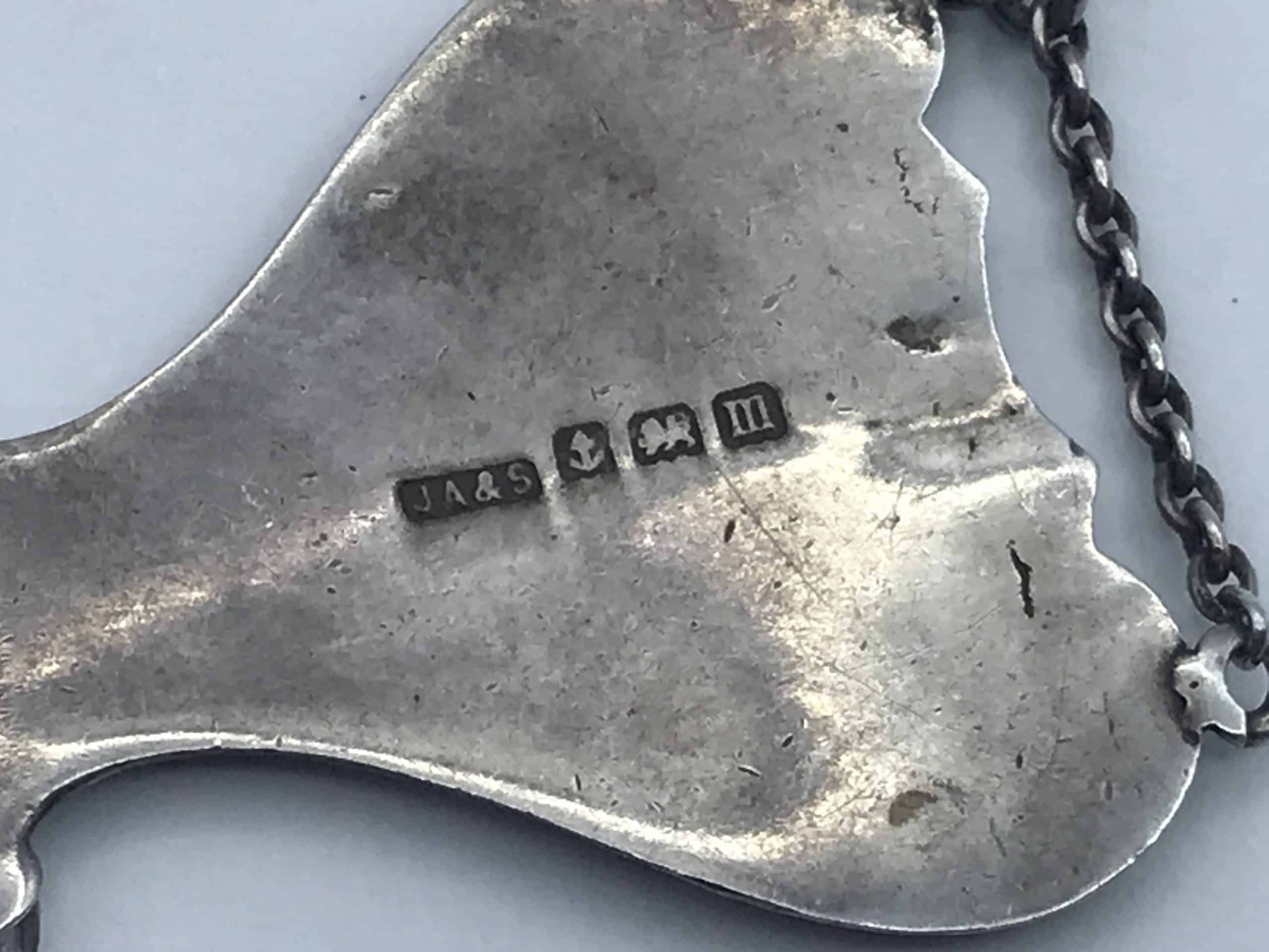 The pendant measures approximately 50mm including the dropper (not including the chain), and the chain length is around 16 inches. Condition is good for its age, with some tiny enamel loss where the chain joins the pendant, noted for accuracy. A scarce example of period silver and enamel jewellery that brings character and authenticity to any collection.