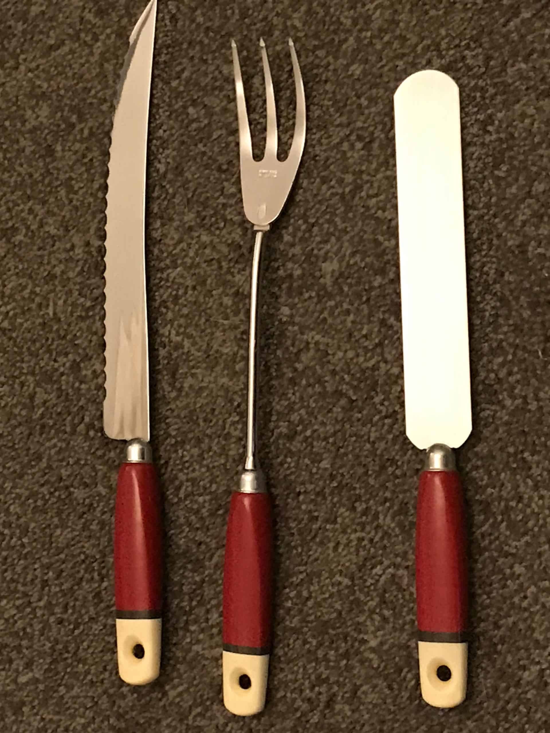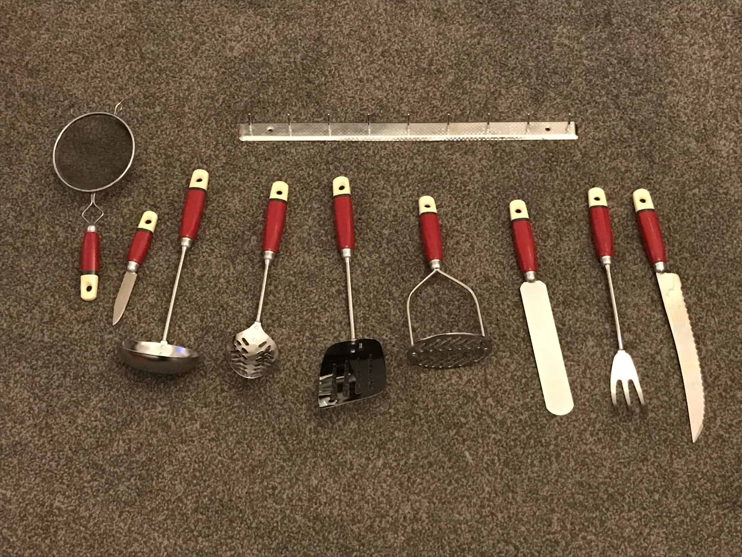 Rare Retro Red Chrome and Stainless Steel Skyline Kitchen Utensils Set