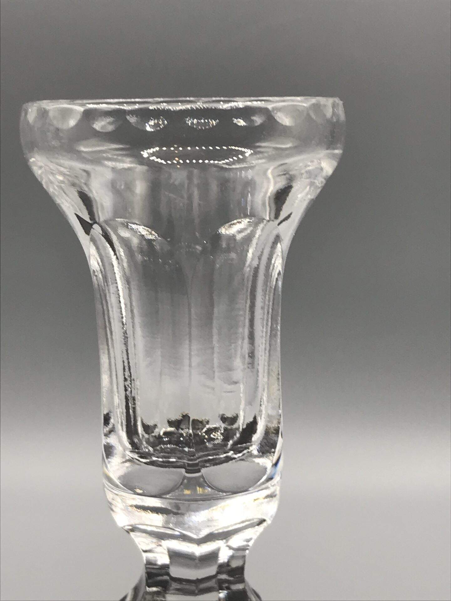 These candlesticks are attributed to Royal Doulton, a historic British manufacturer founded in 1815 and widely respected for its ceramics and decorative crystal. While unsigned, the design is consistent with mid-20th century Doulton crystal lines, including examples made in Austria for the brand. Royal Doulton crystal items—especially those in excellent condition—are increasingly collectible, known for their precision cutting and refined silhouettes.