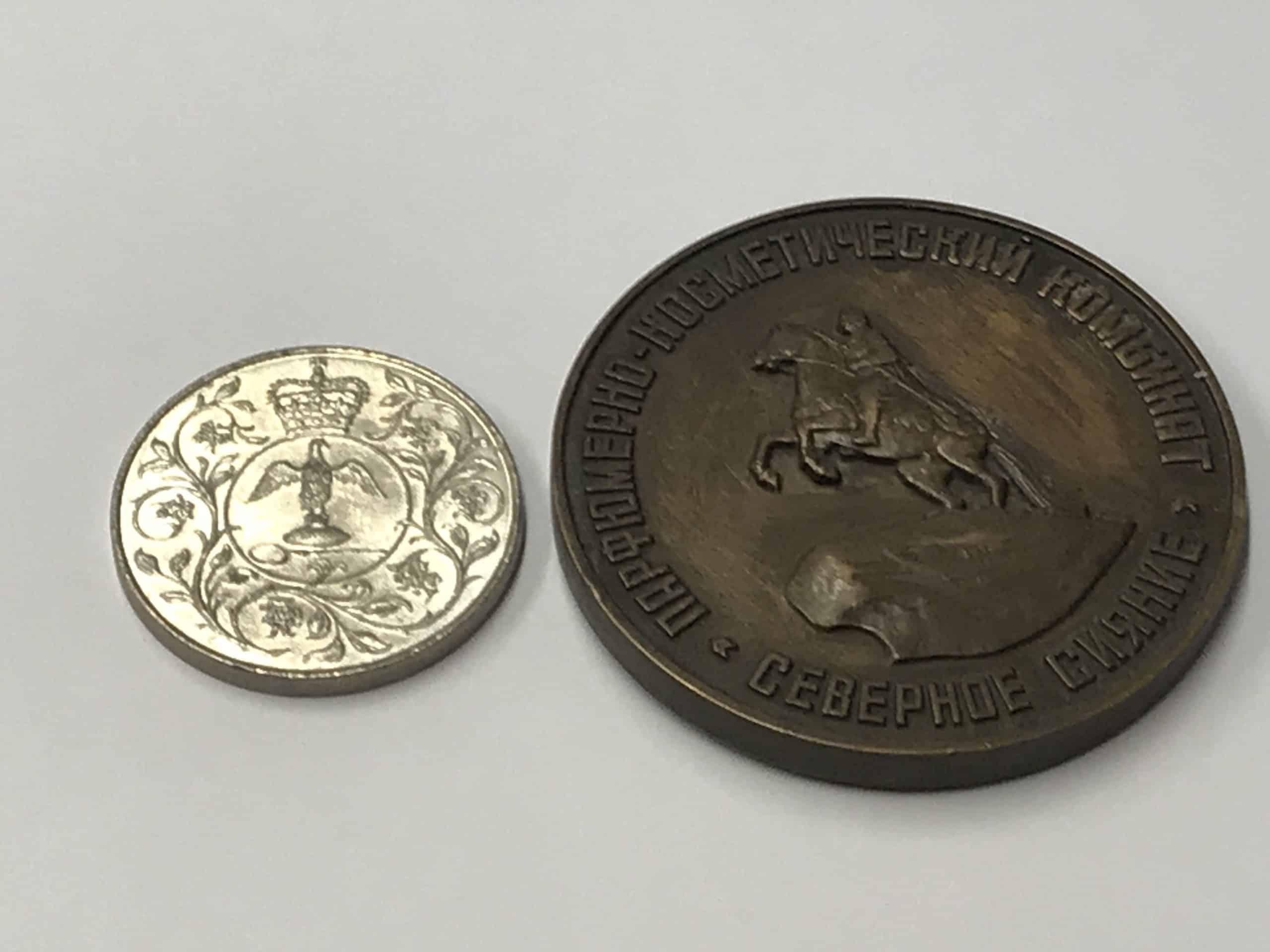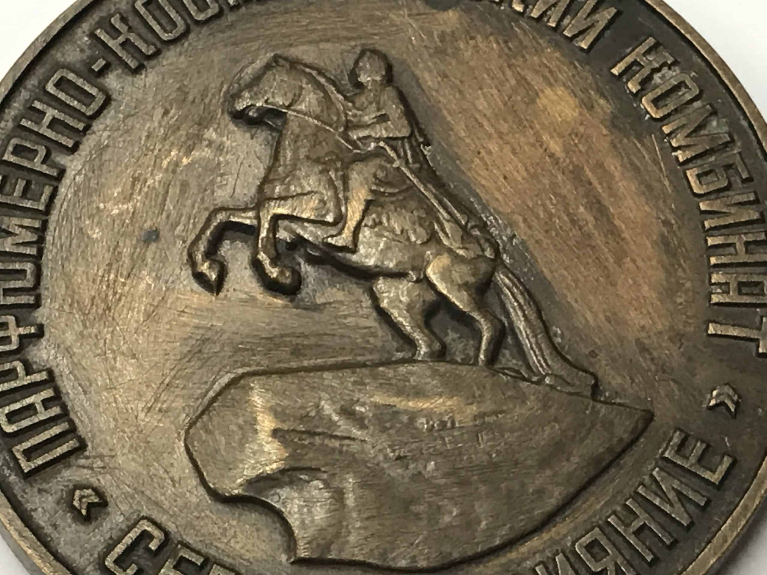 On offer is a Russian solid bronze table medal issued to commemorate 125 years of the Severnoe perfume and cosmetics plant. This substantial medal features detailed relief work to both sides and reflects the robust design typical of late Soviet-era commemorative pieces.