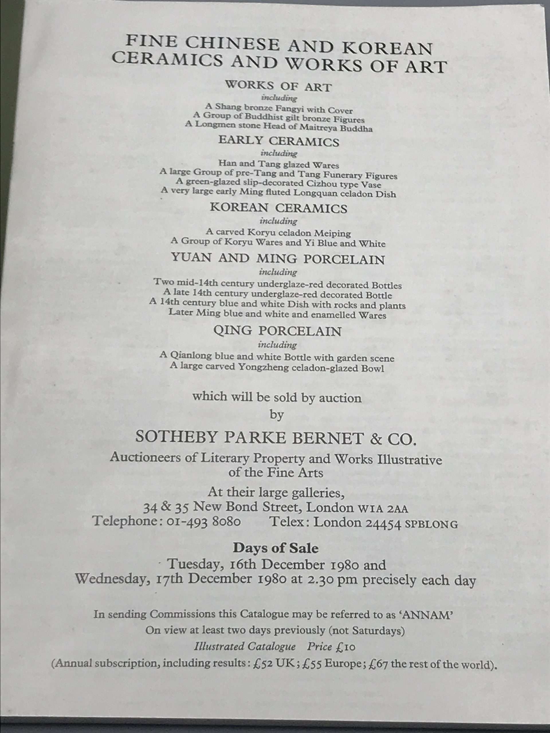 Sothebys Catalogue of fine Chinese and Korean Ceramics 1980