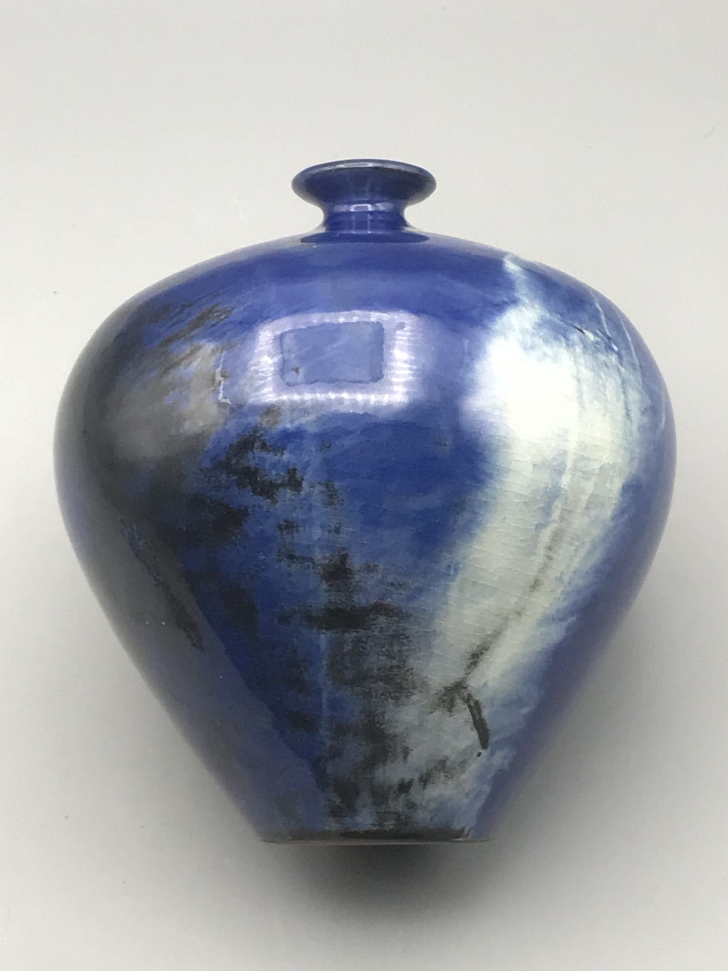 ✅ Elegant rounded form with narrow neck and glossy blue-white glaze effects