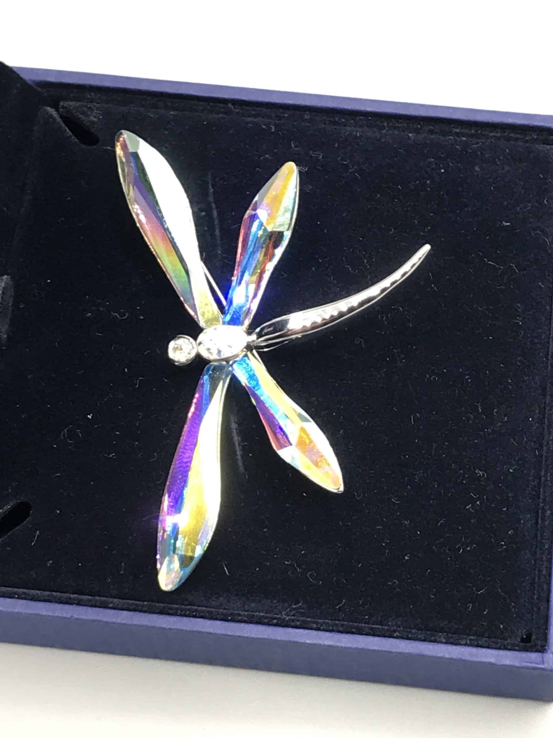 Swarovski Crystal Dragonfly Brooch – Iridescent Wings in Original Box