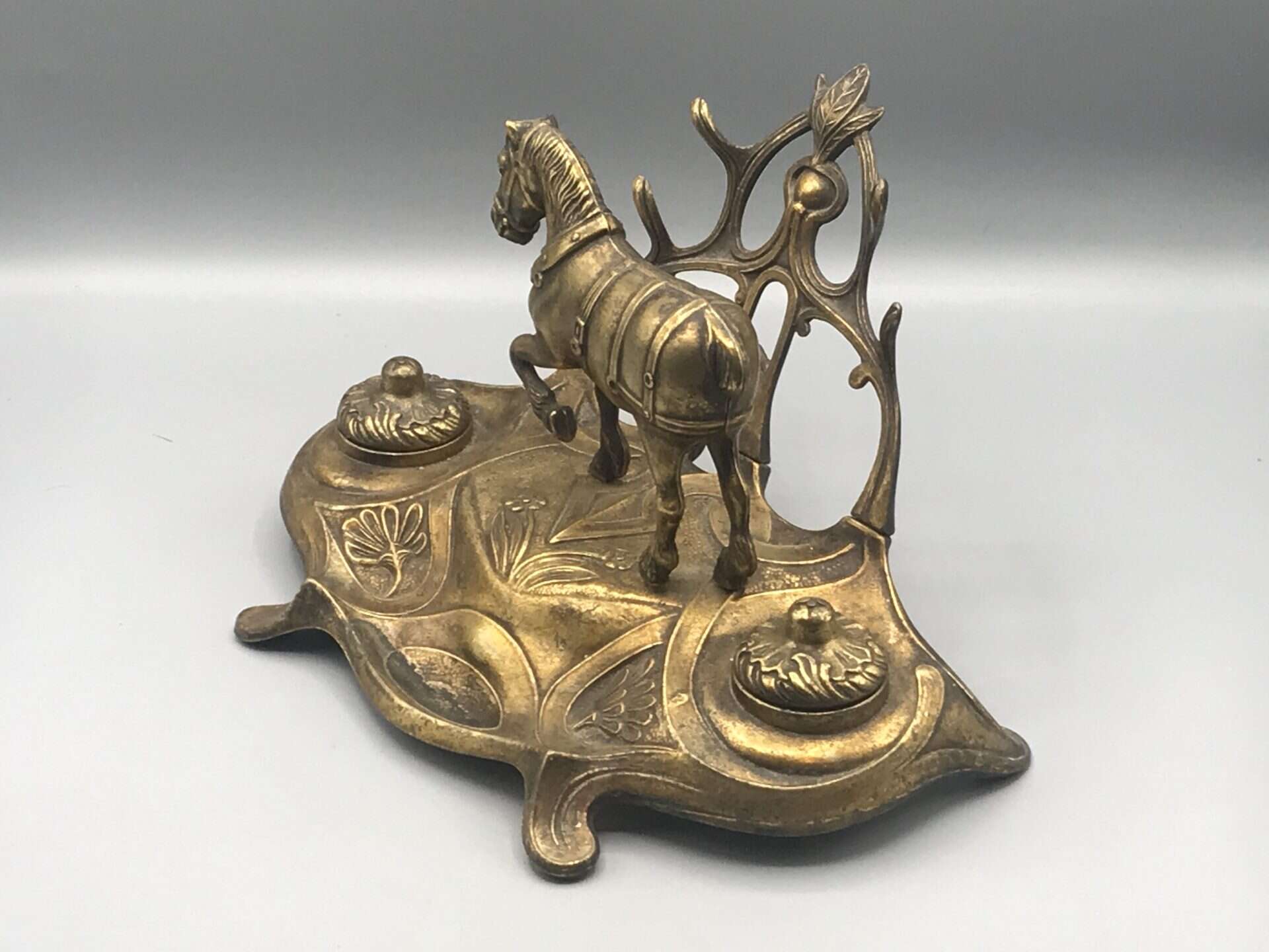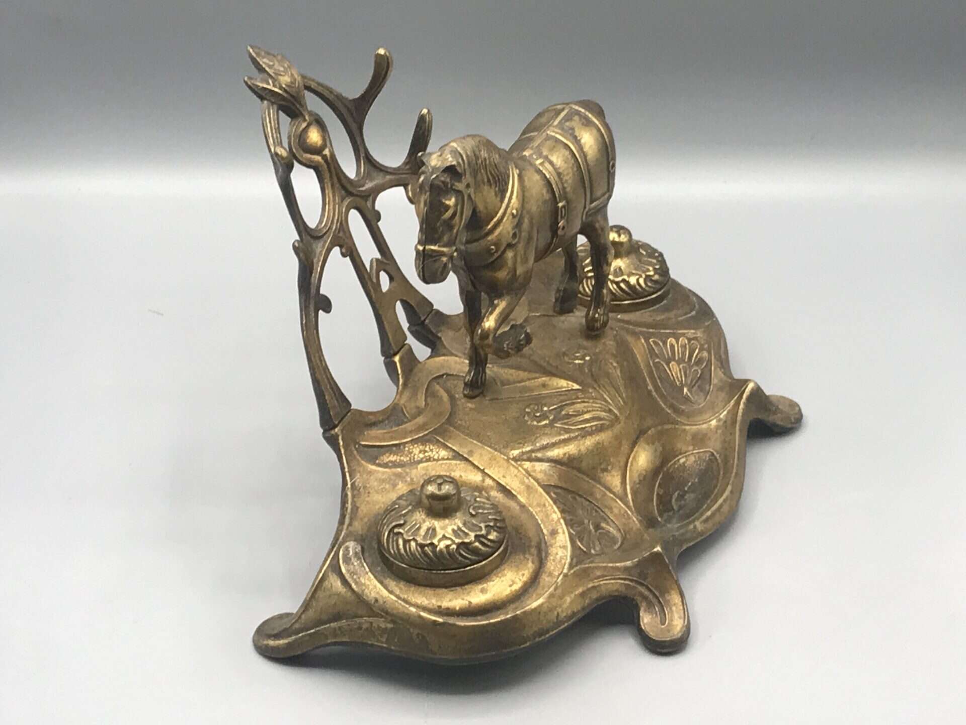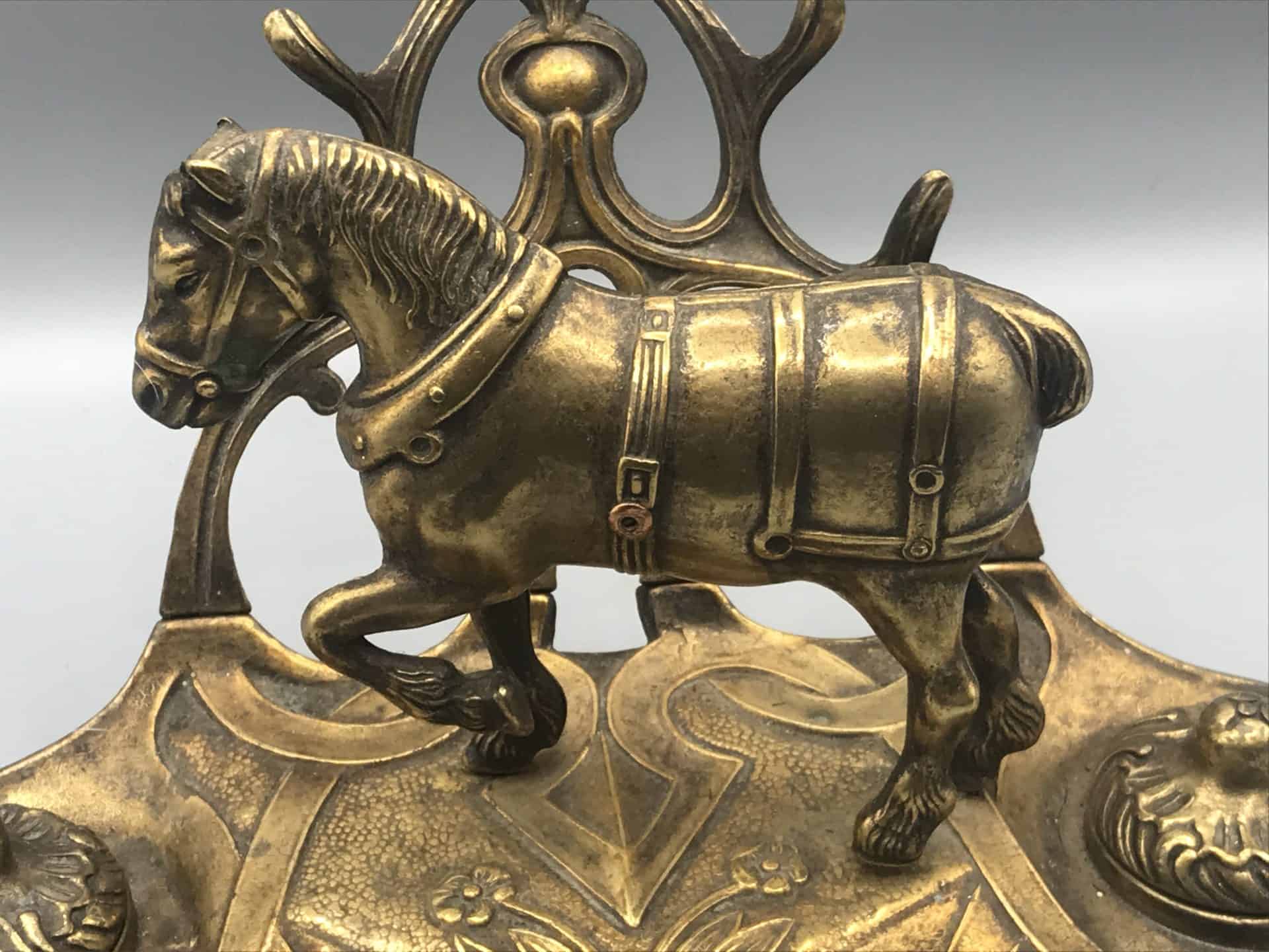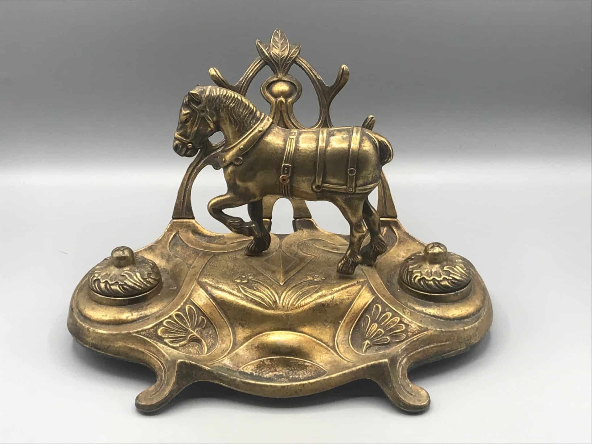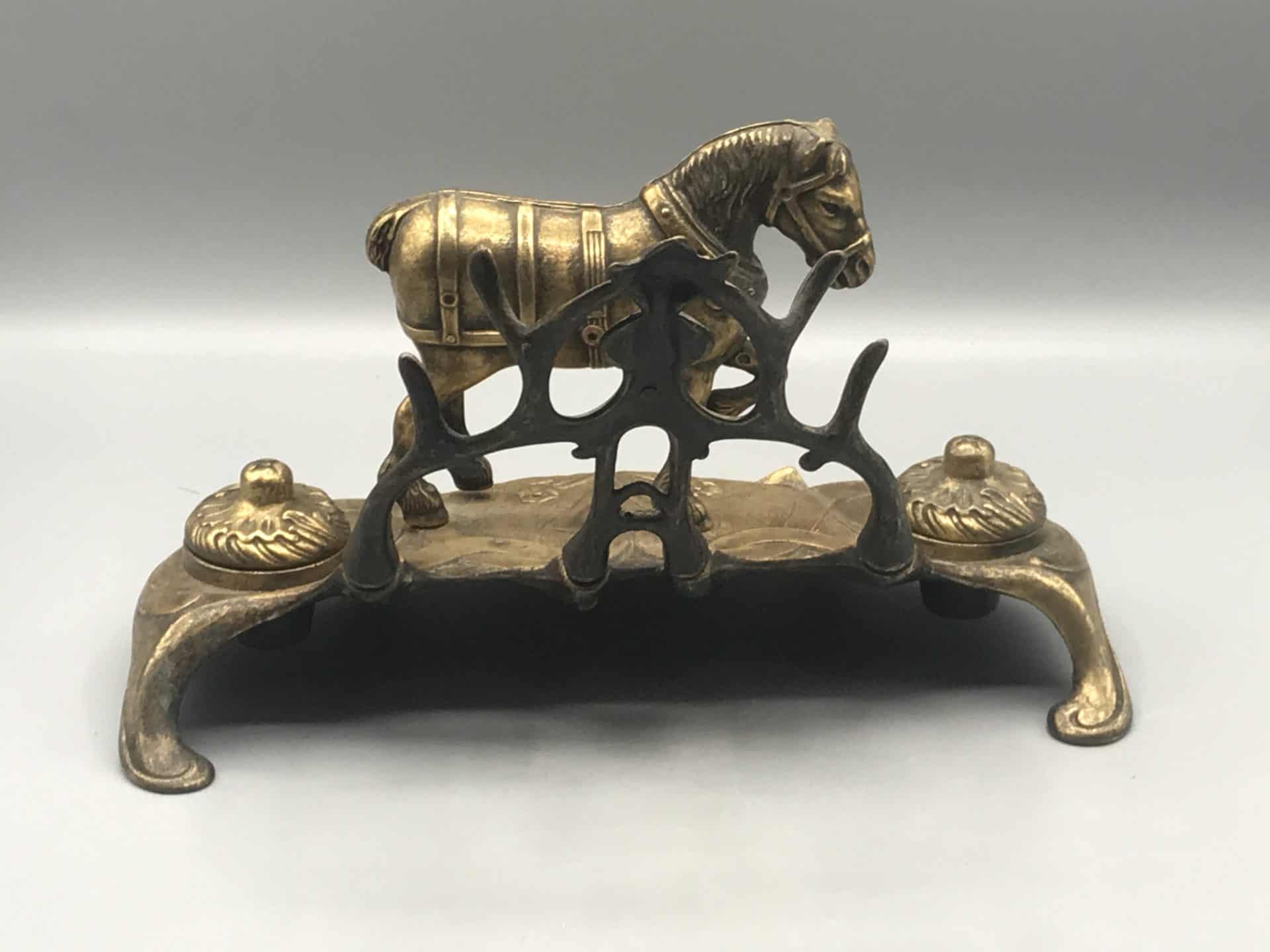 Brass Ink Stand Art Nouveau Equestrian Horse Desk Inkwell